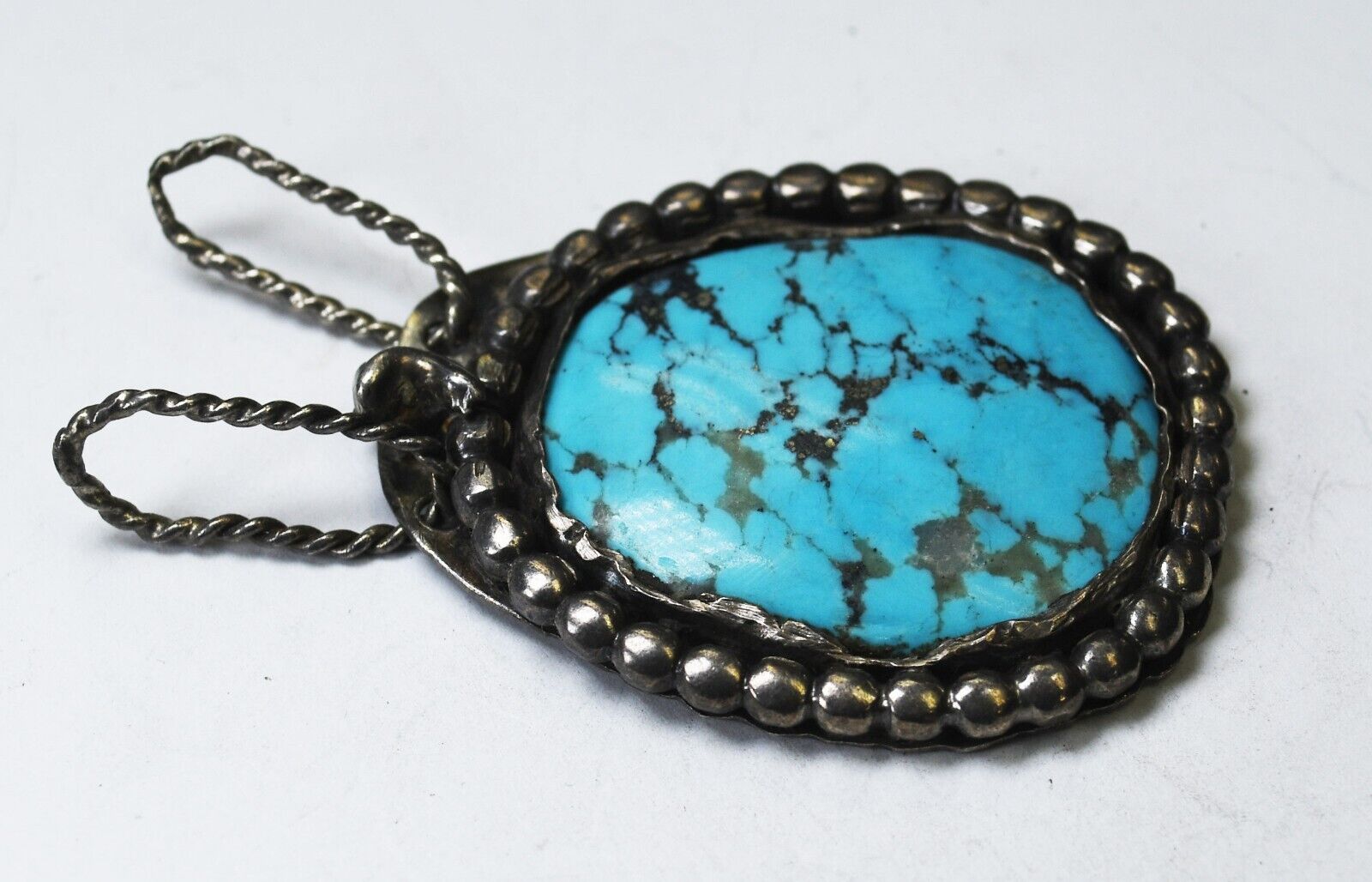 Sterling Silver Klemgards Oval Turquoise Slider Pendant 2.5" x 38mm