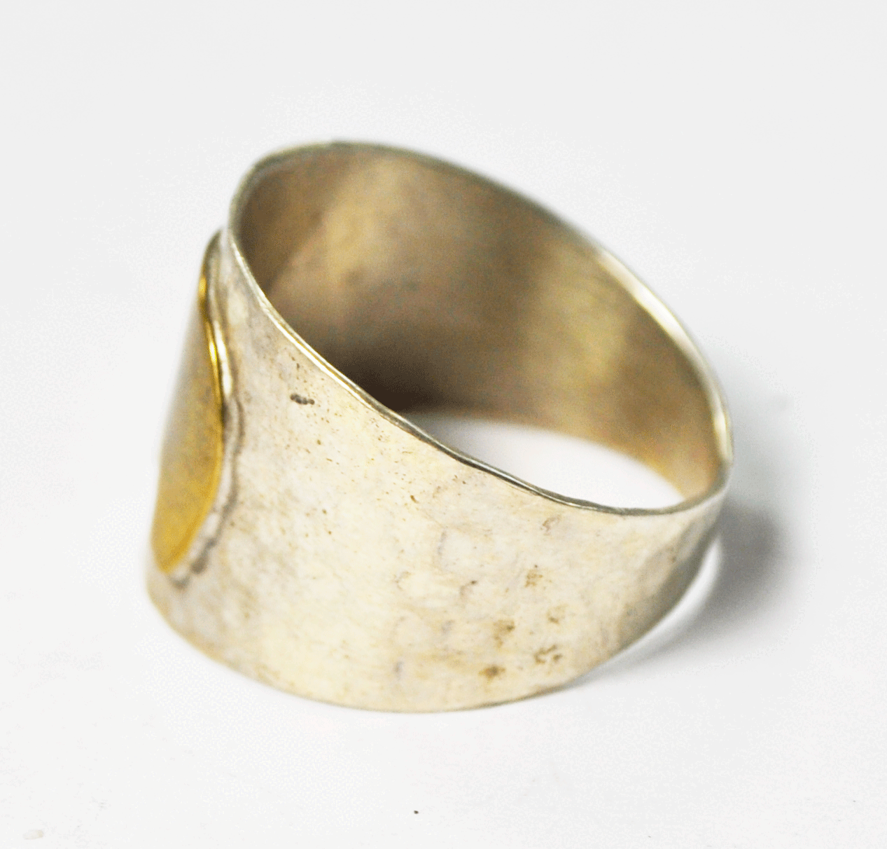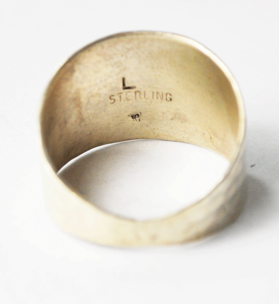 Sterling Silver L Two Tone Bear Hammered Band 16mm Band Size 9