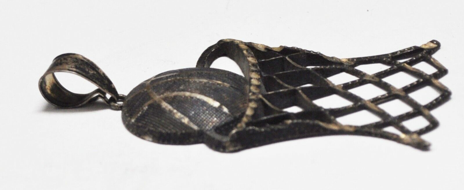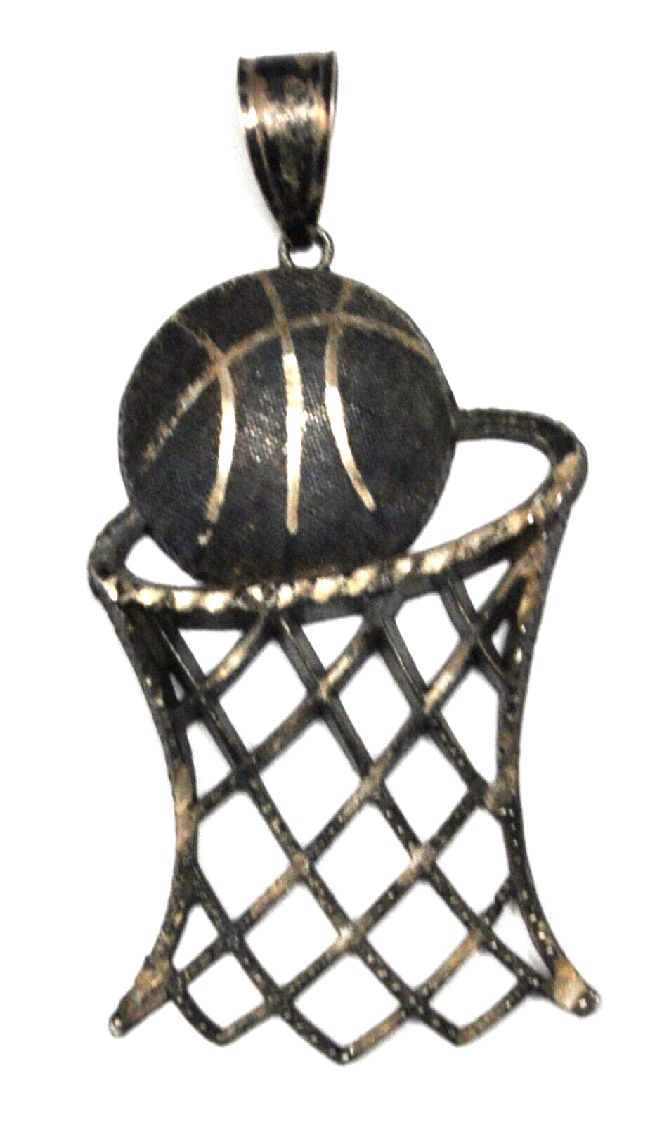 Sterling Silver Large Basketball Hoop Pendant 3-1/8" x 1.5" Diamond Cut