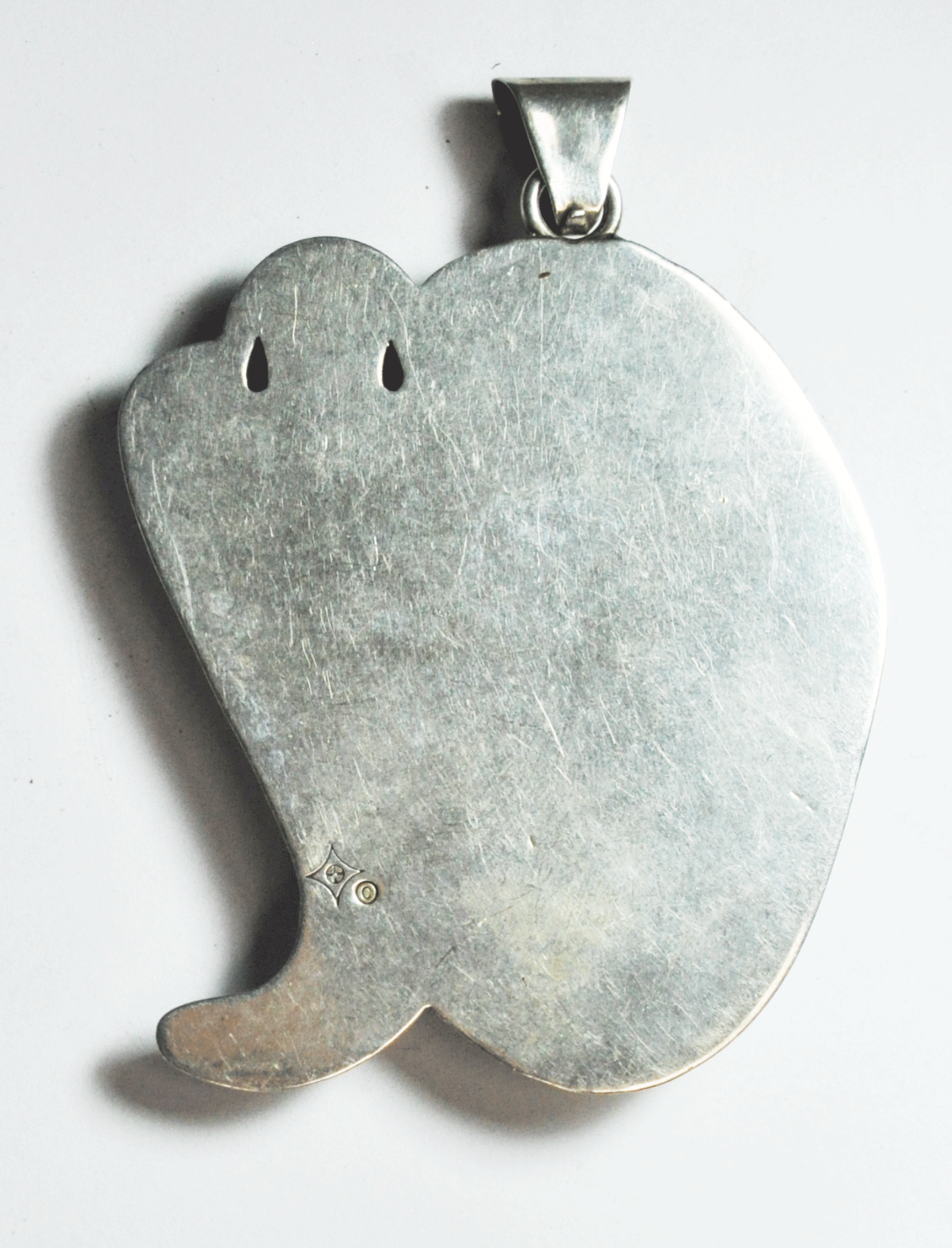 Sterling Silver Large Turquoise Hopi Sun Inlay Signed Pendant 3-1/8" x 2-1/4"