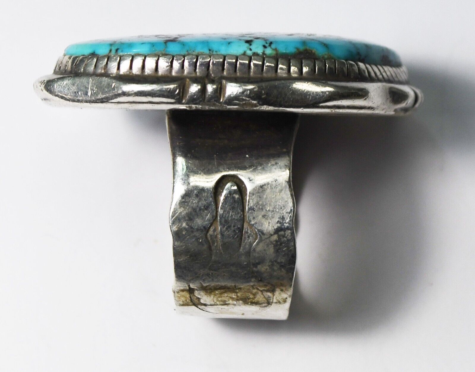 Sterling Silver Large Turquoise Ring 44mm Sun Size 11 30g Embossed Wide Band