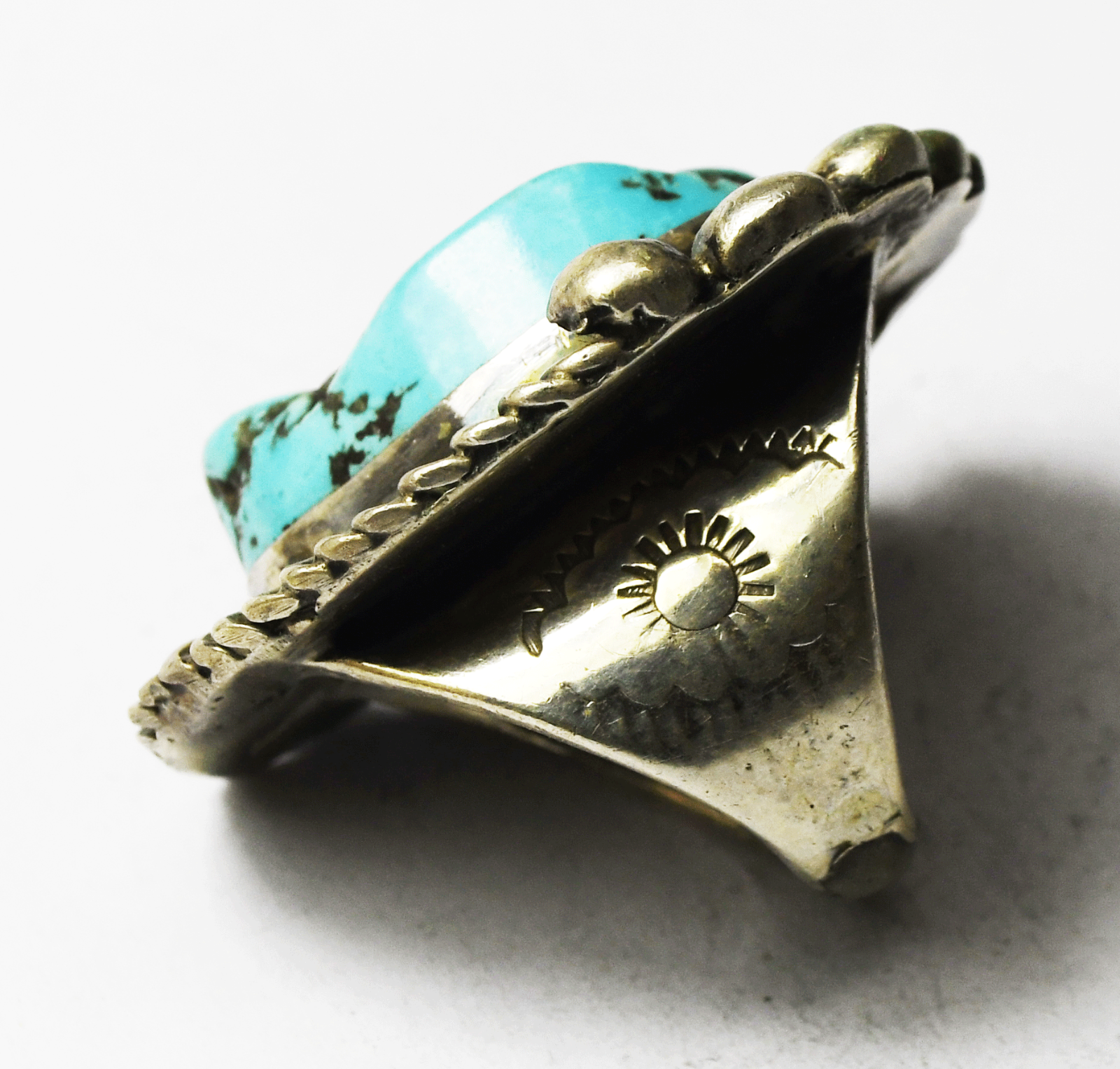 Sterling Silver Large Turquoise Striped Dot Ring 44mm Size 8-1/2 32g