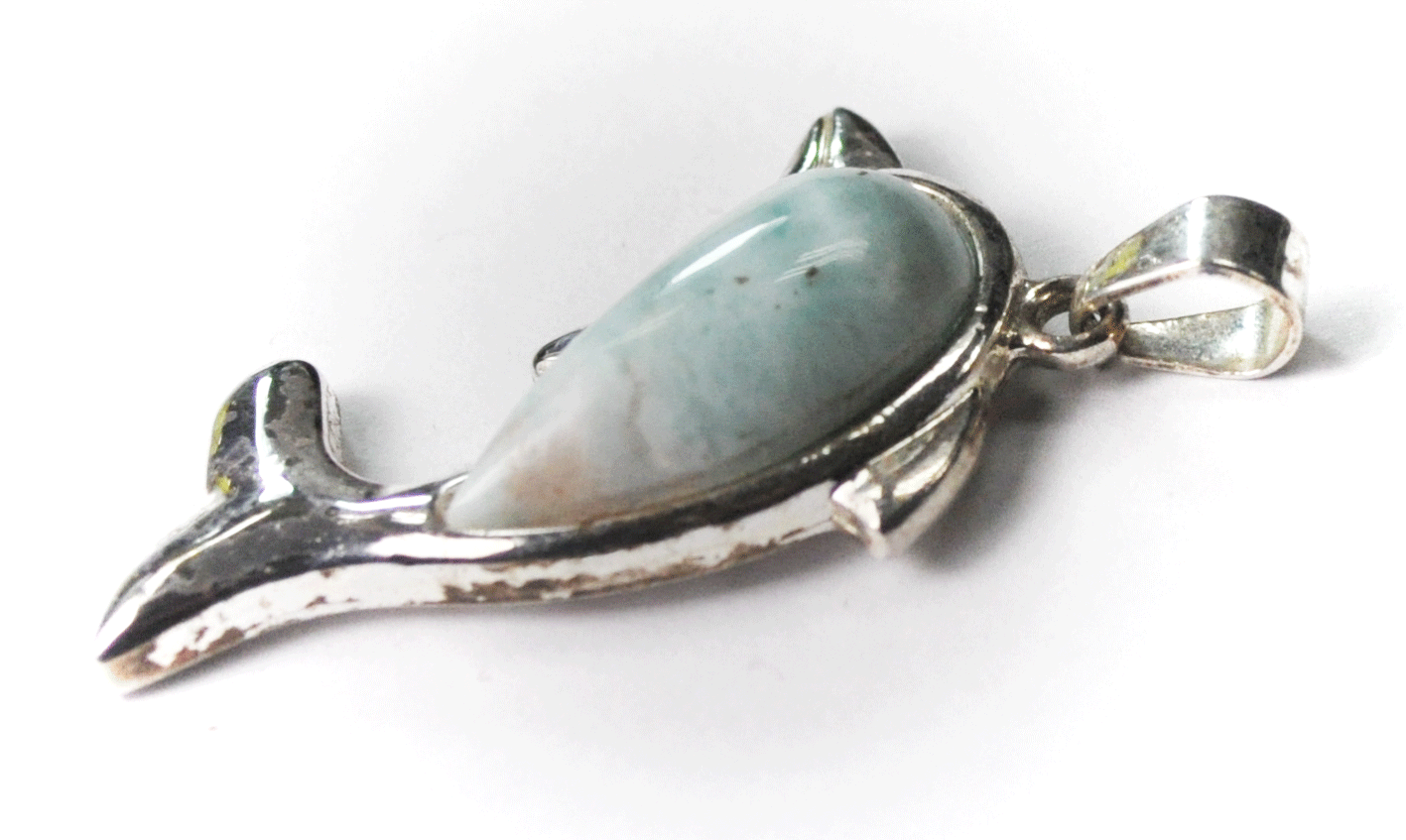Sterling Silver Larimar Blue Dolphin Pendant 42mm x 22mm