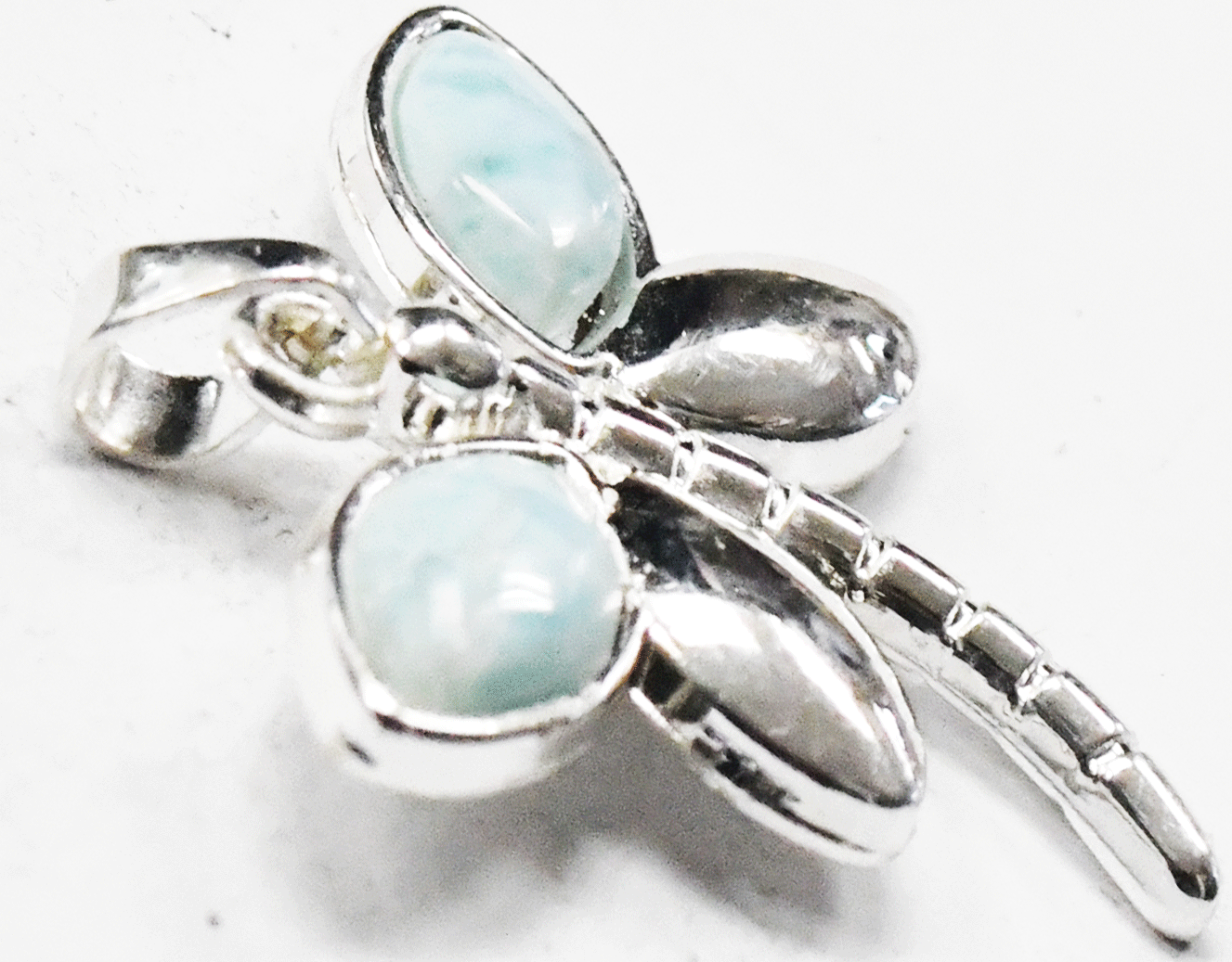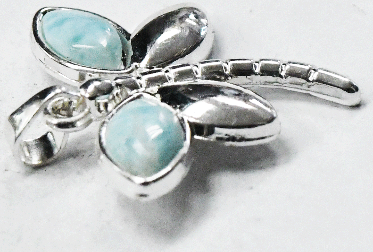 Sterling Silver Larimar Blue Dragonfly Butterfly Bug Pendant 35mm x 32mm