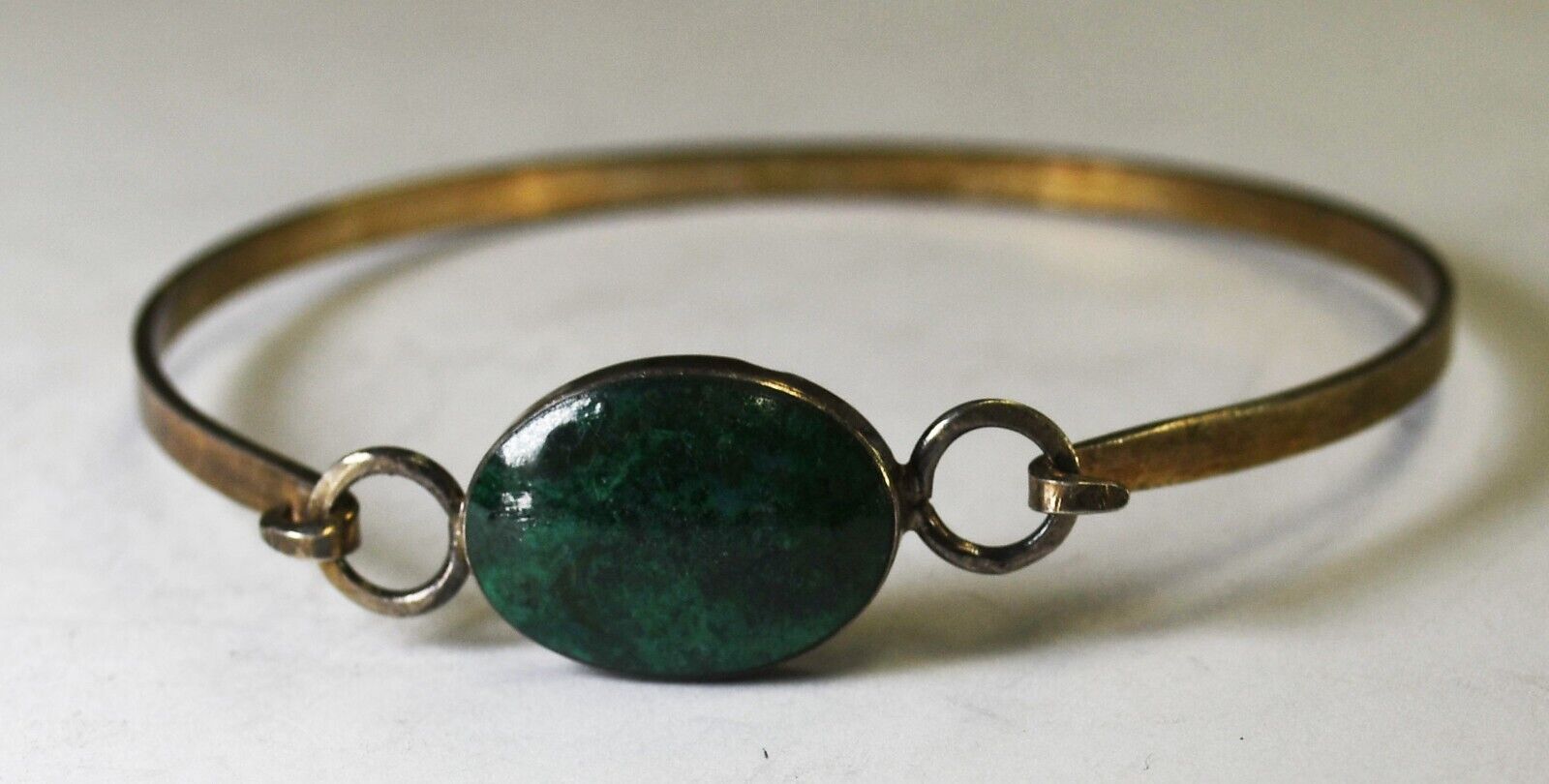 Sterling Silver Latch Hinged Chrysocolla Round Small Bangle Bracelet 13mm
