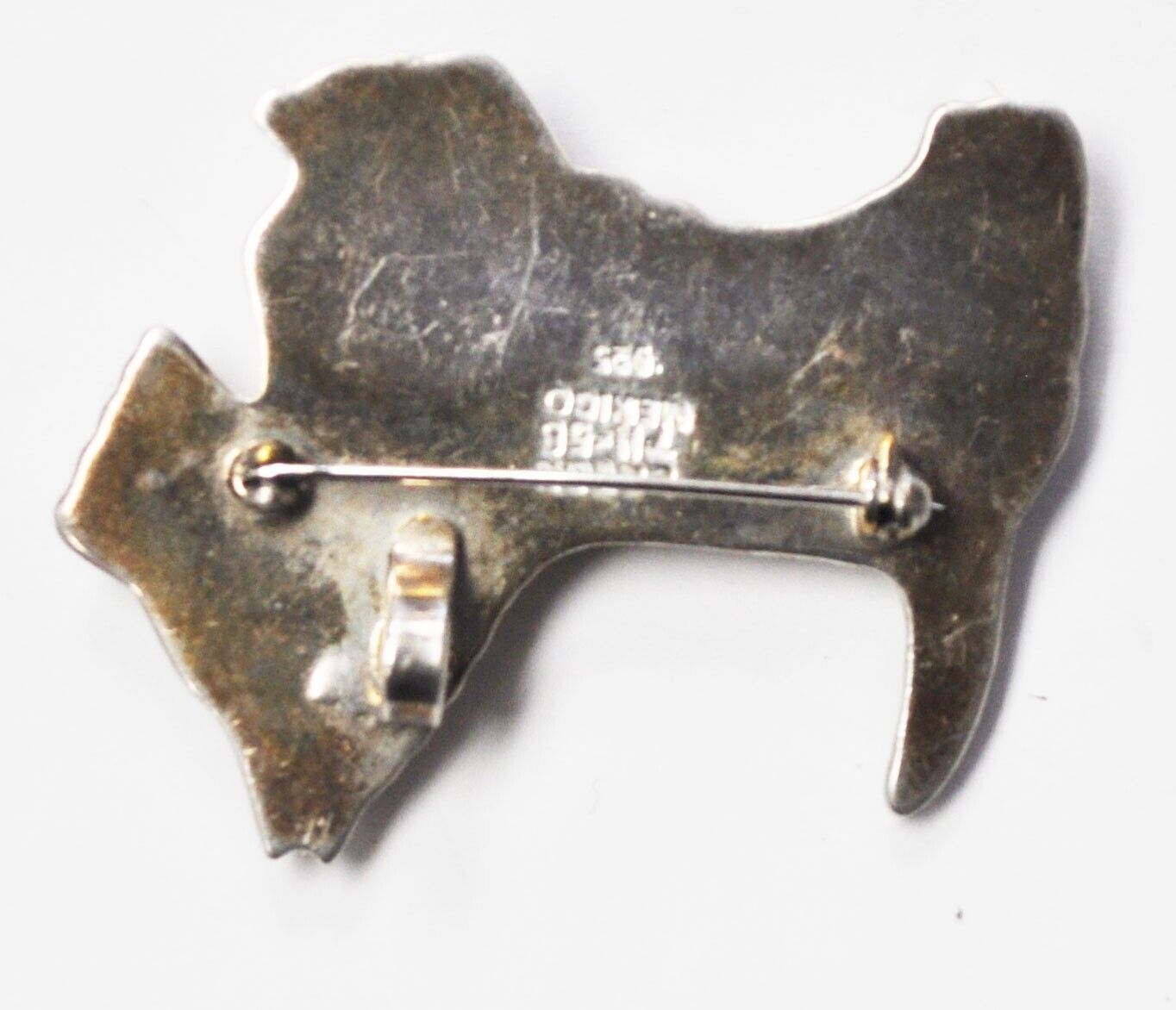 Sterling Silver Laton TN-56 Terrier Dog Striped Two Tone Brooch Pin 53mm x 43mm
