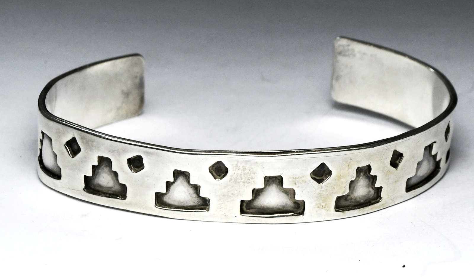 Sterling Silver Layered Pyramid Cuff Bracelet 12mm 7.25" Wrist 20g