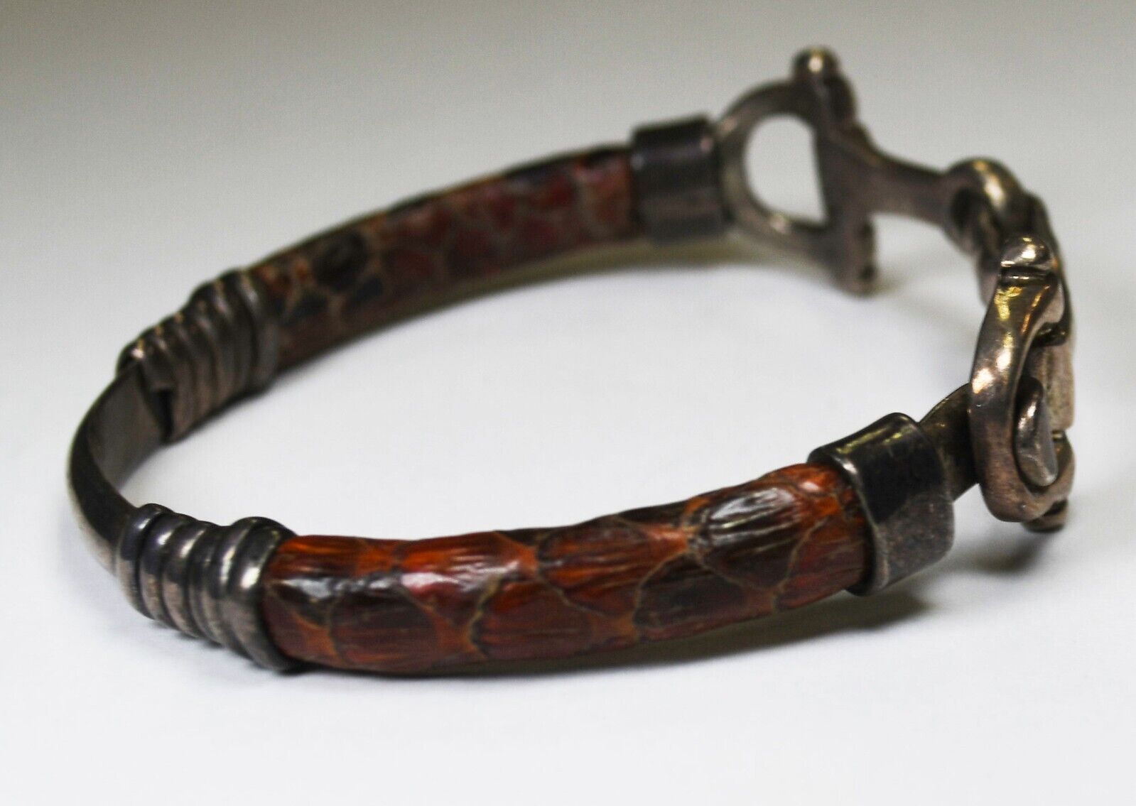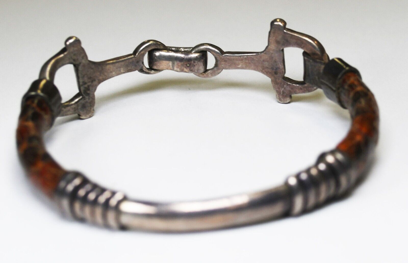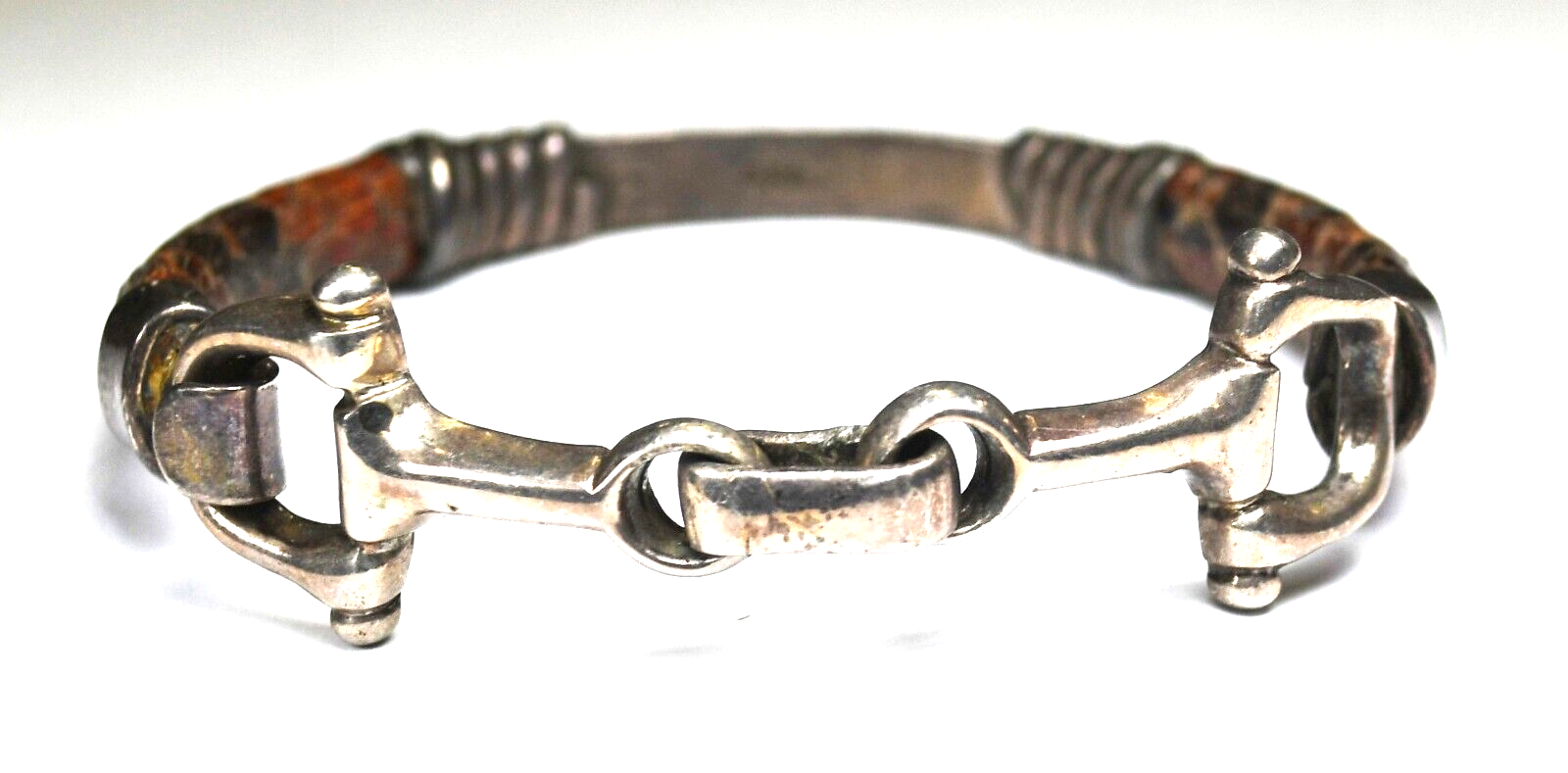Sterling Silver Leather Latch Hinge Small Bangle 18mm Bracelet
