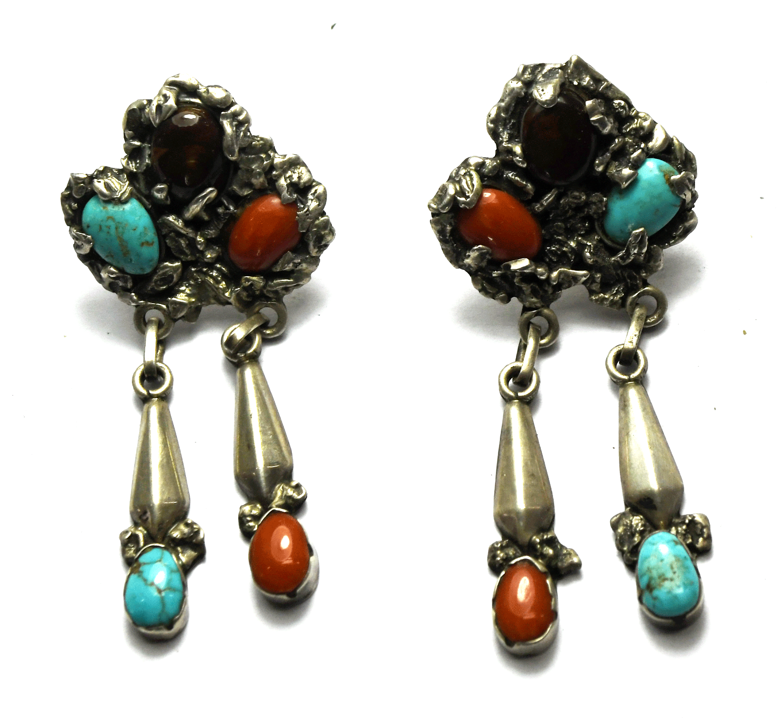 Sterling Silver Lee & Mary Turquoise Coral Dangle Earrings 55mm x 26mm
