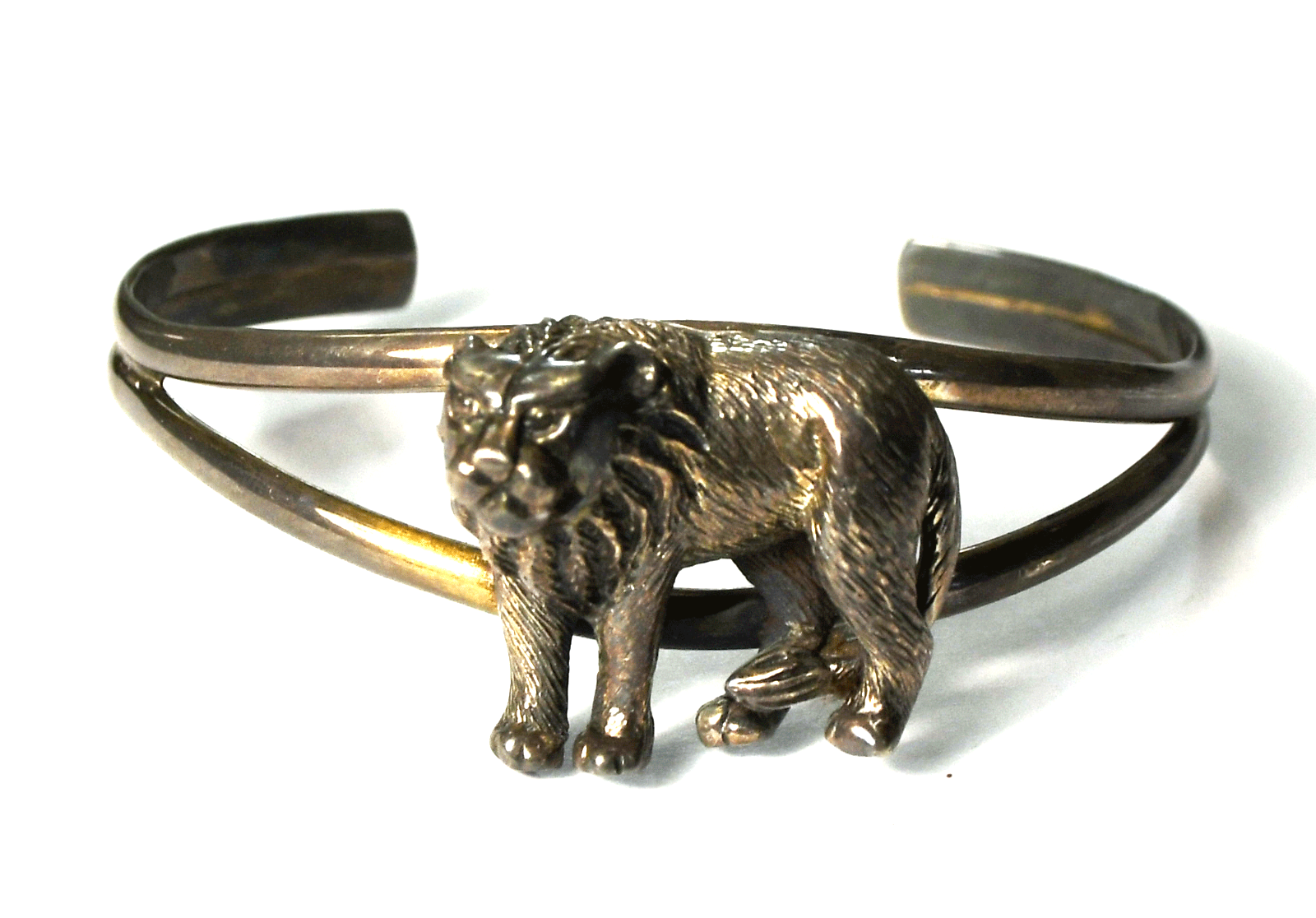 Sterling Silver Lion Split 23mm Cuff Bracelet 6-3/4" Wrist