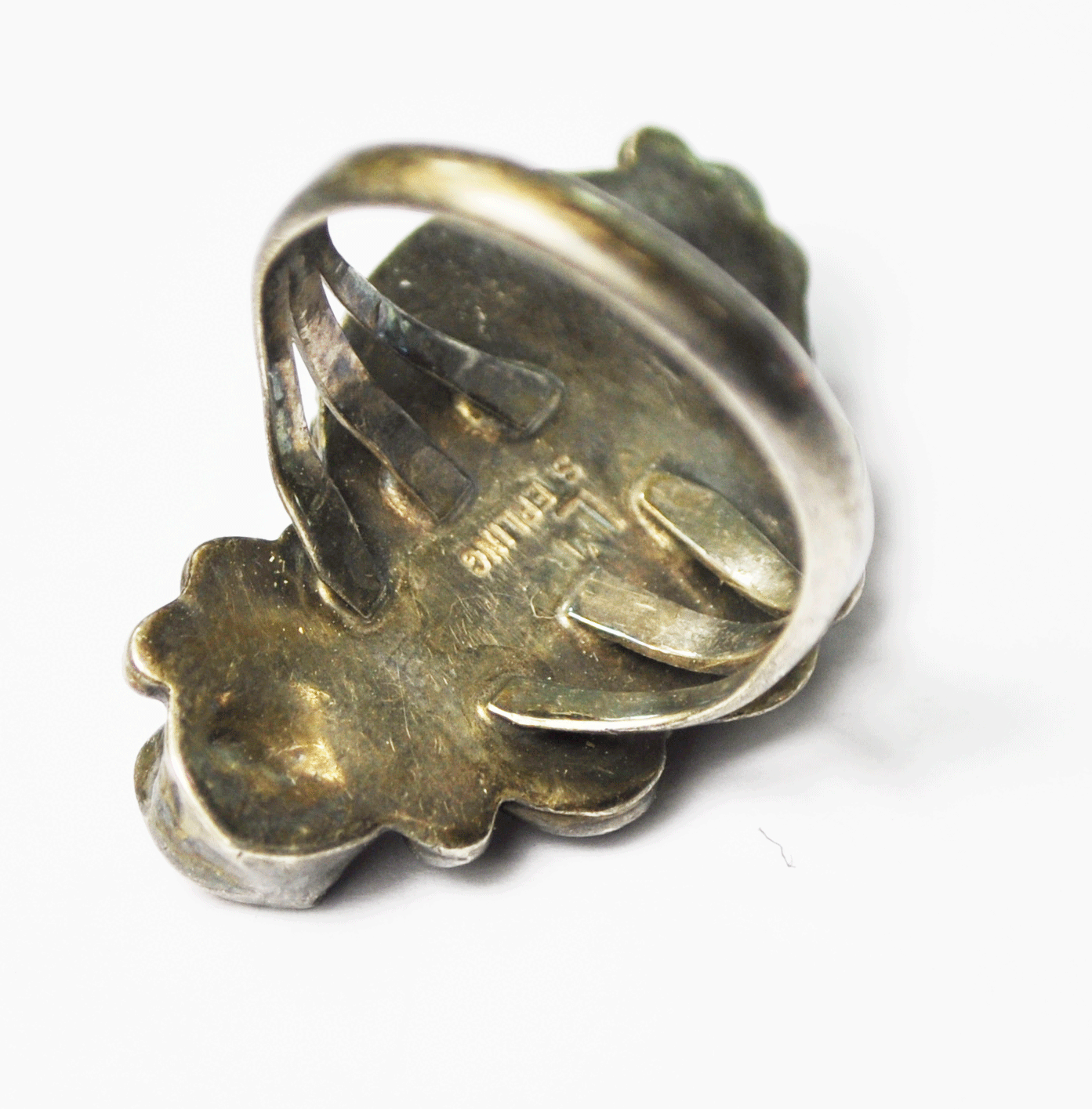 Sterling Silver LM Floral Coral Turquoise Overlay Ring 31mm Sz 7.5