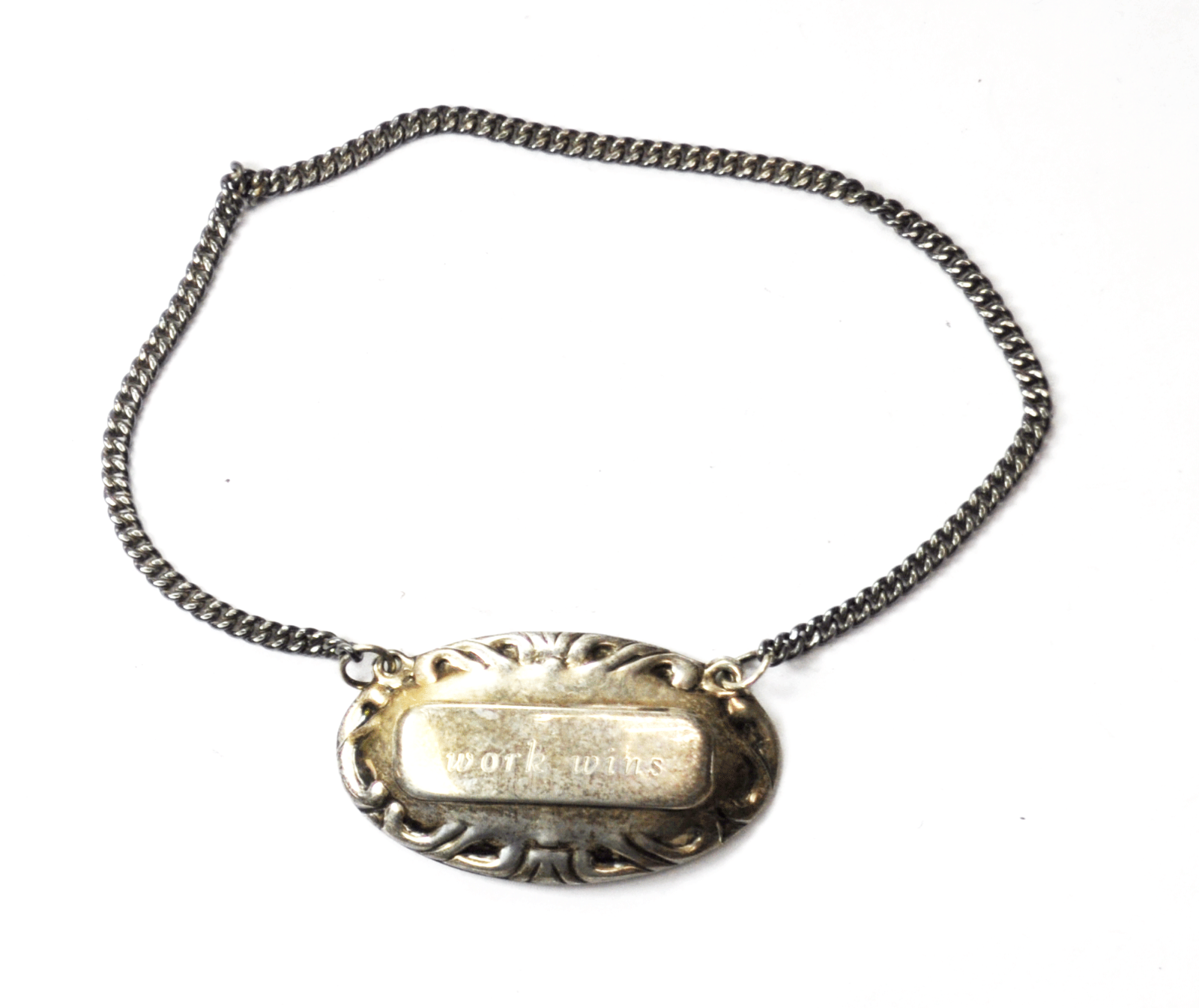 Sterling Silver Luggage Bottle Tag Bracelet Work Wins Mono 25mm 9"