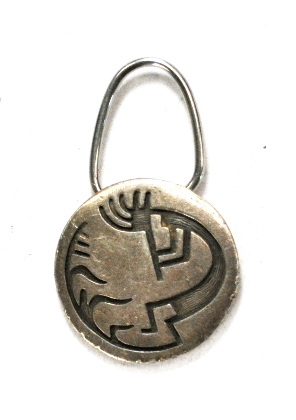 Sterling Silver Manuel Hoyungowa Kokopelli 38mm Round Key Ring Chain