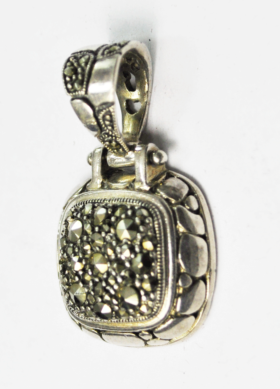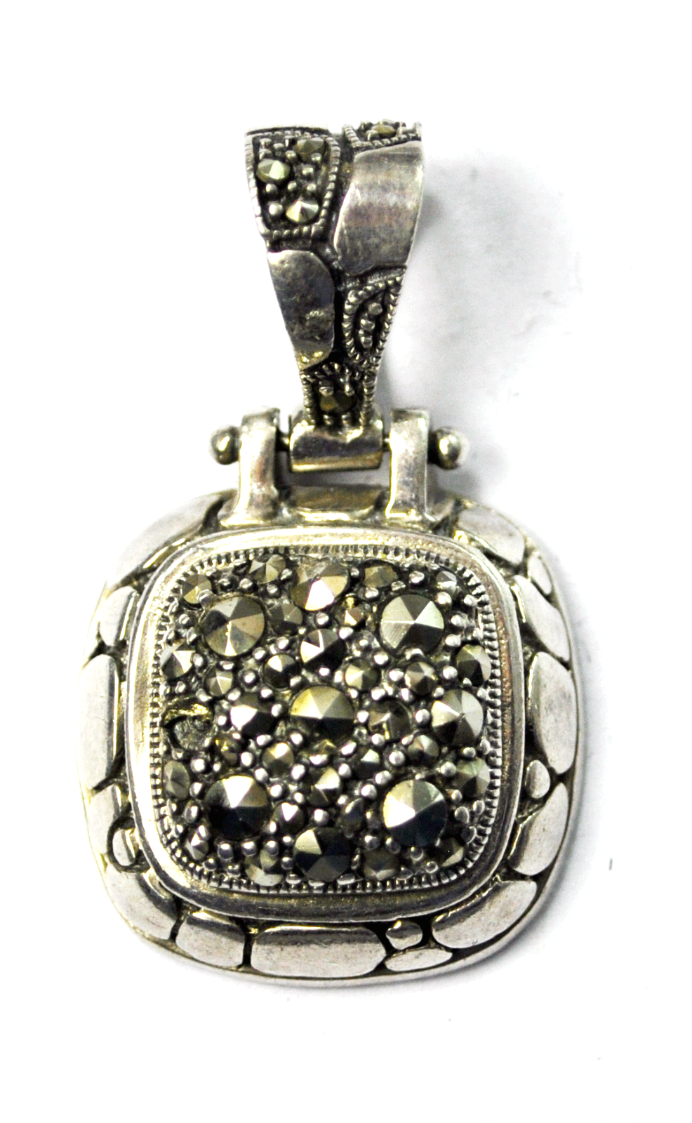 Sterling Silver Marcasite Nugget Center Turtle Shell Halo Pendant 1.25"