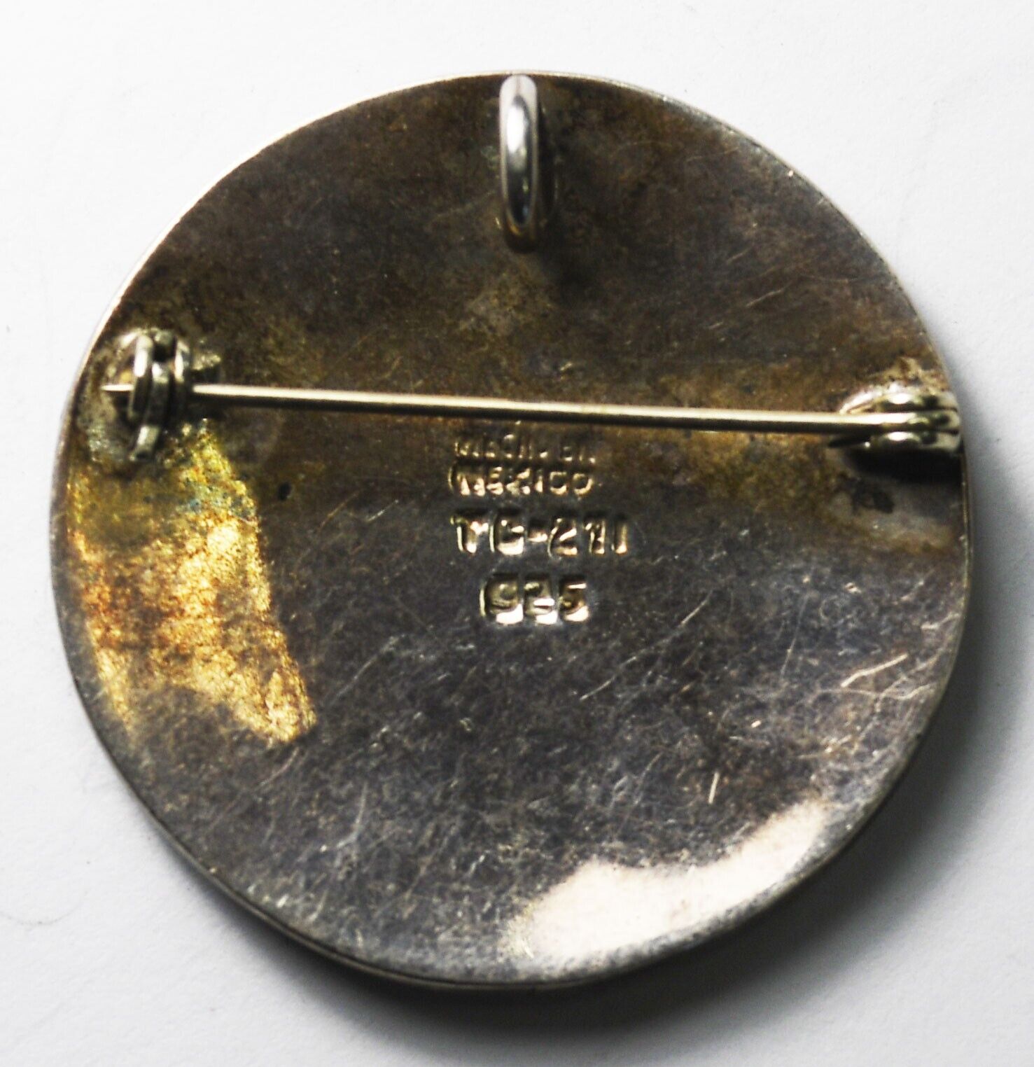 Sterling Silver Mayan Aztec Lapis Mosaic Inlay Brooch Pin 39mm