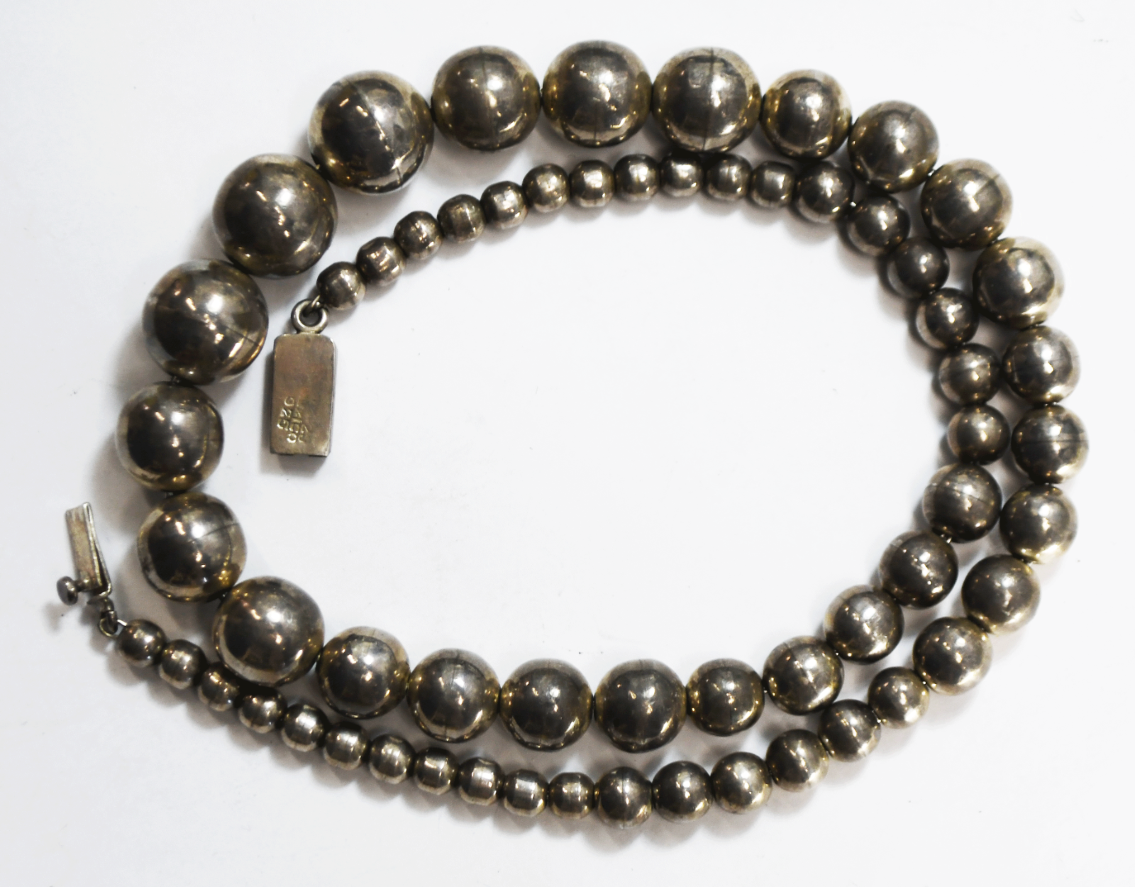 Sterling Silver Mexico 6-16mm Graduated Bead 22.5" Necklace 91.4g