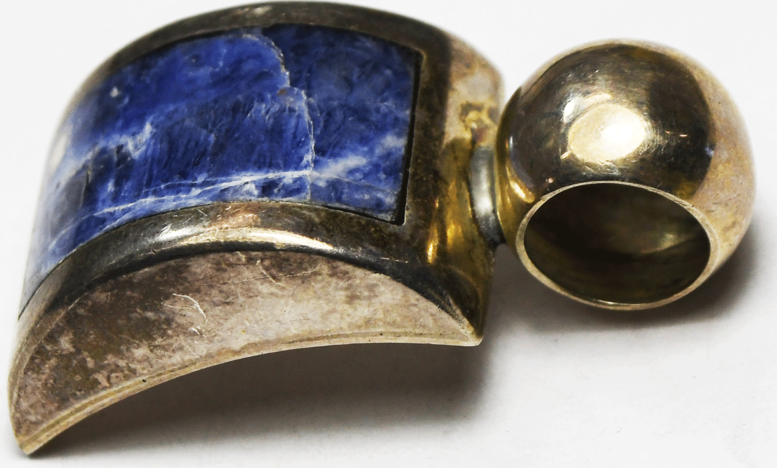 Sterling Silver Mexico ATI Domed Blue Sodalite Rectangle Pendant 41mm x 20mm