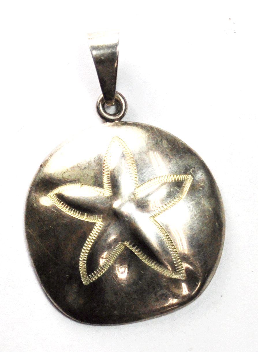 Sterling Silver Mexico ATI Sand Dollar Starfish 58mm x 40mm Pendant 7mm Bale