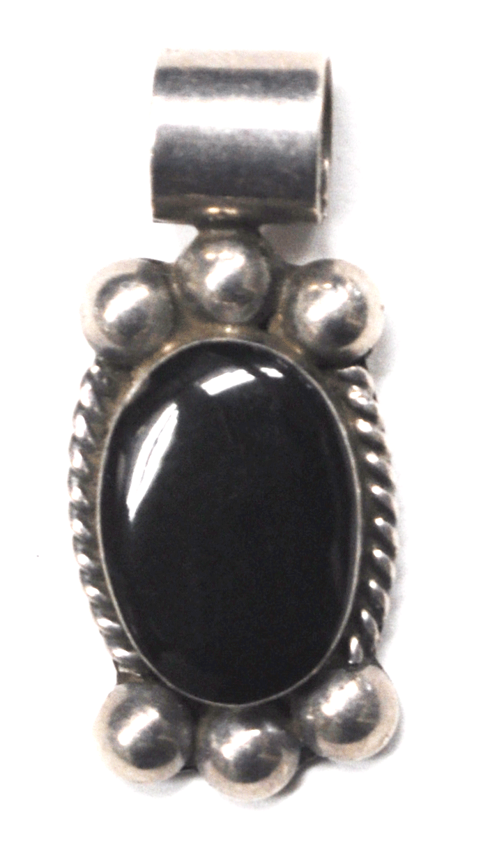 Sterling Silver Mexico Black Onyx Oval 6 Dot Pendant 38mm x 16mm