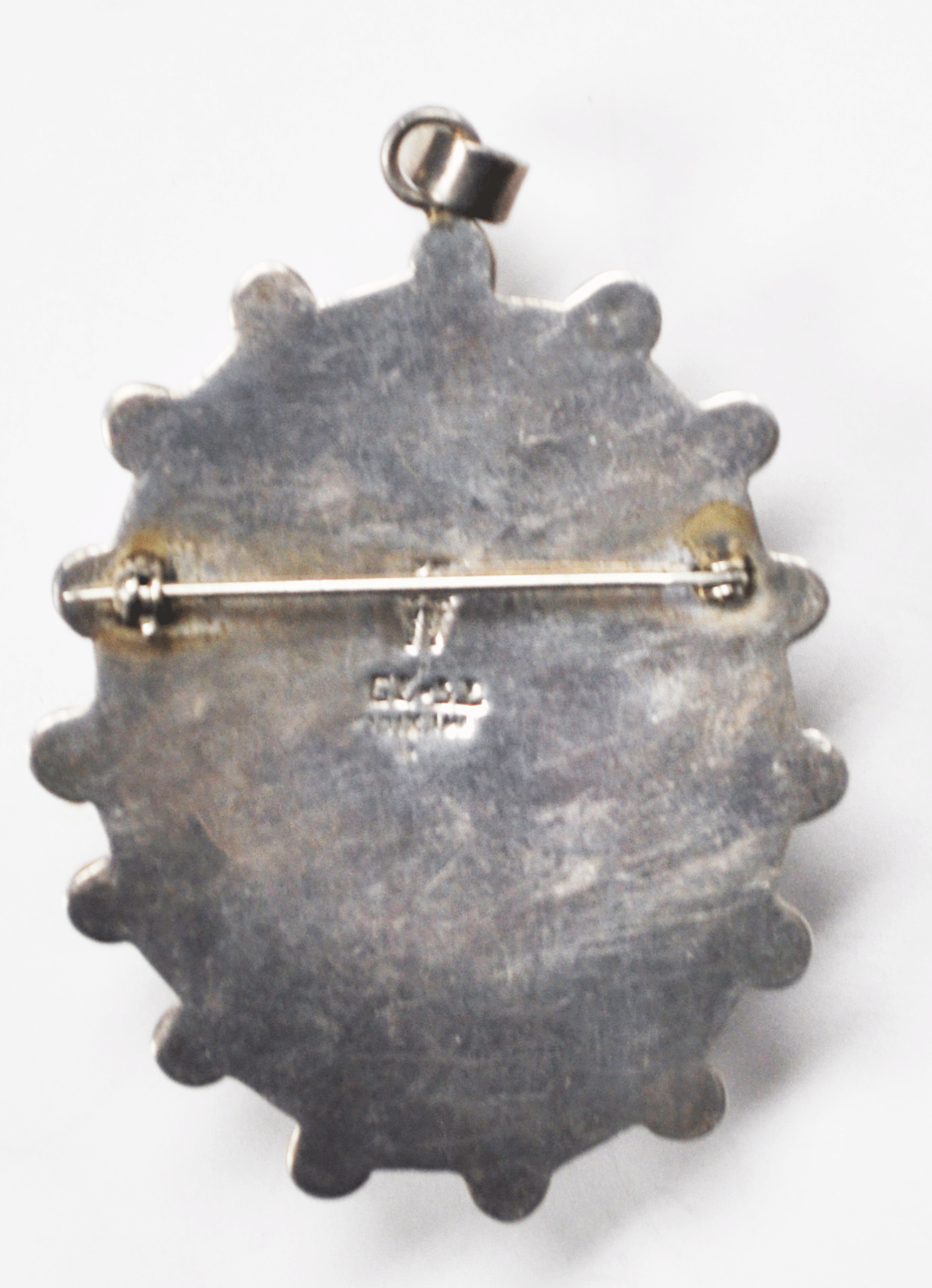 Sterling Silver Mexico Black Onyx Oval T5-79 Large Pendant Brooch 2-7/8" x 1-7/8