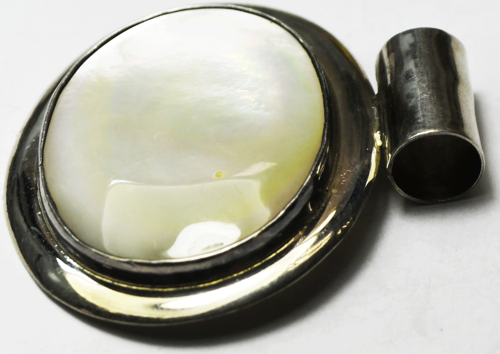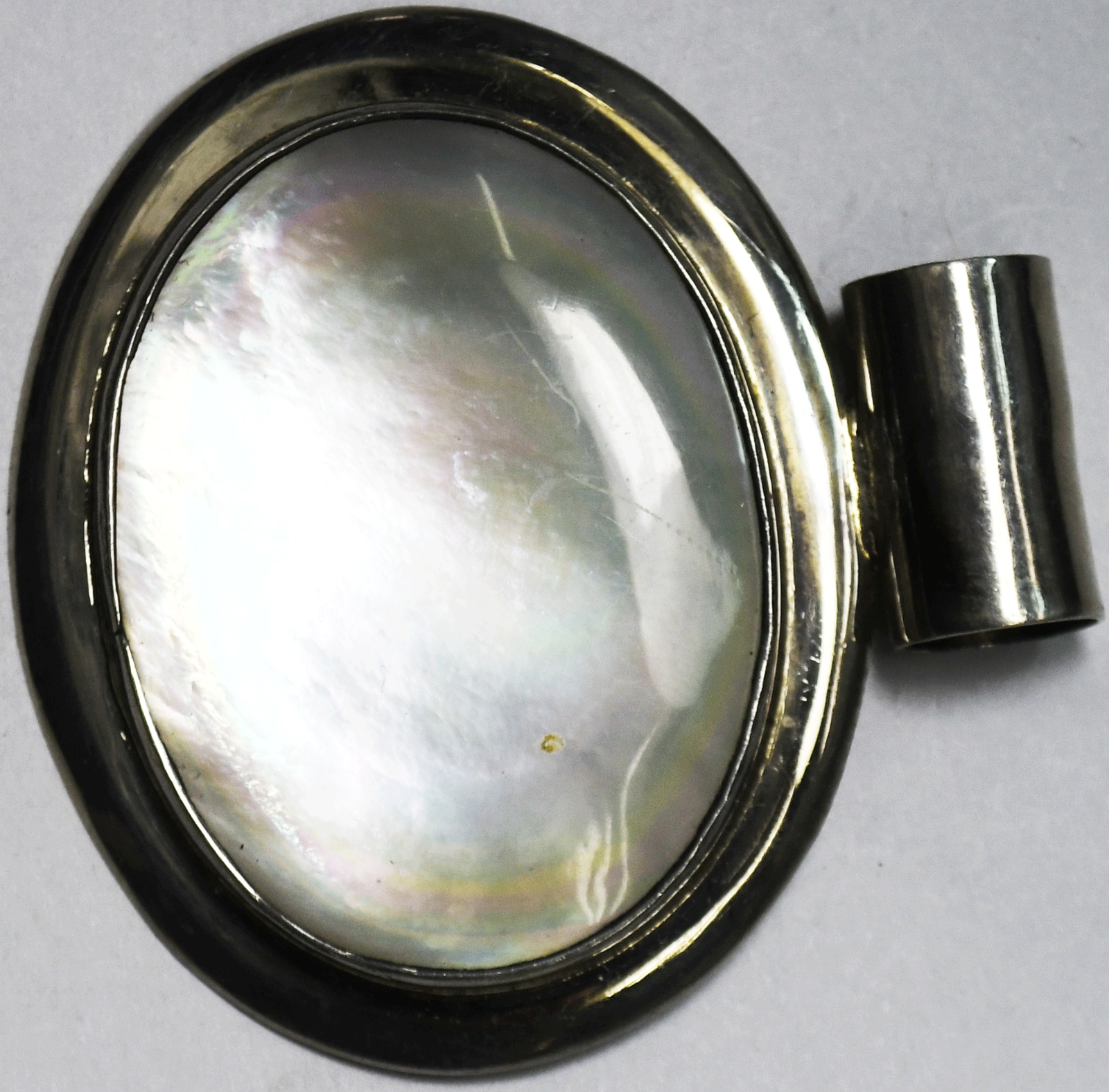 Sterling Silver Mexico Large White MOP Oval Pendant 48mm 32g