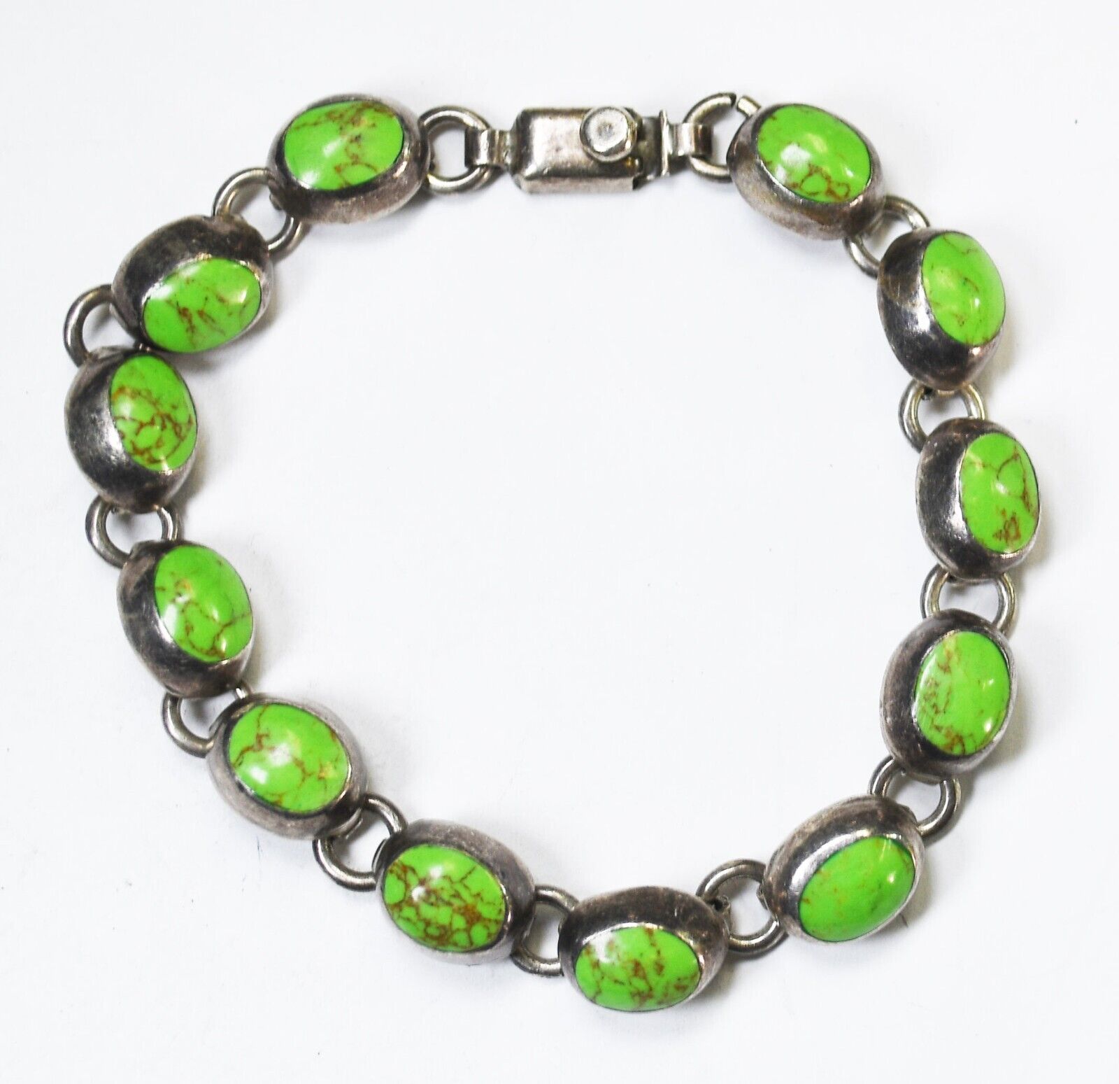 Sterling Silver Mexico Lime Green Dyed Howlite Bracelet 9mm 7.25"