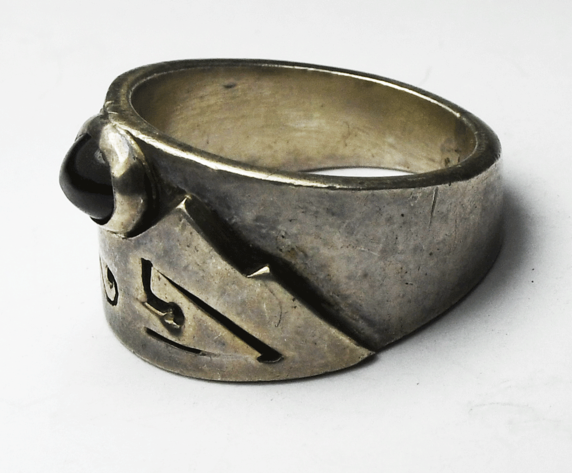 Sterling Silver Mexico Mountains Landscape Onyx Ring 13mm Size 8-1/2