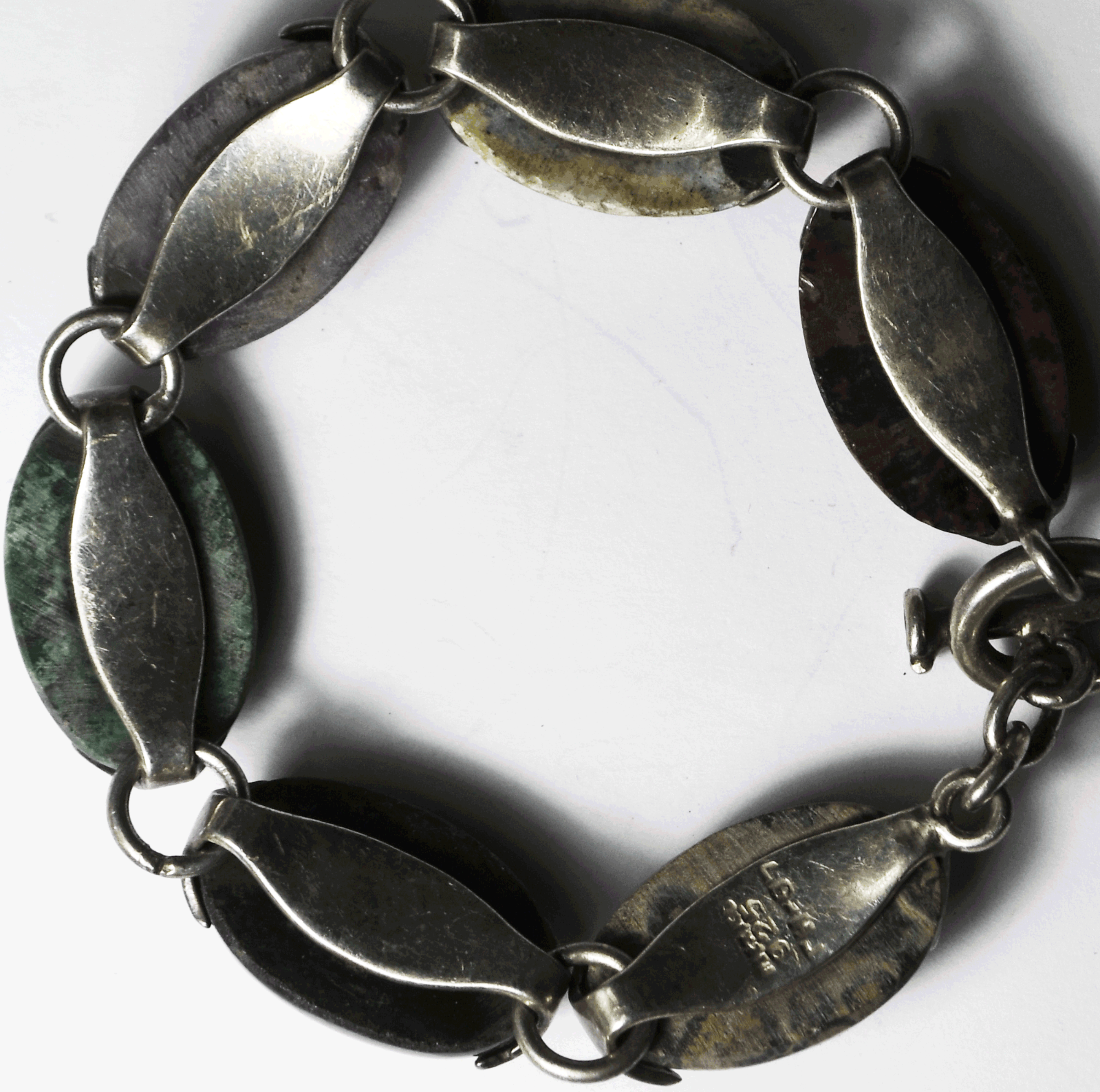 Sterling Silver Mexico Multi Stone Onyx Jasper Amethyst 16mm Toggle Bracelet 8"