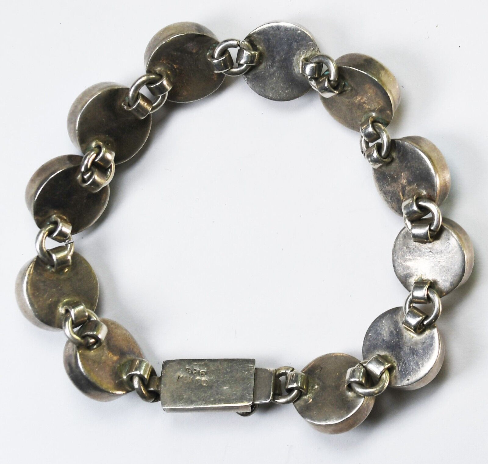 Sterling Silver Mexico Multi Stone Round Link Bracelet 13mm 7.25"