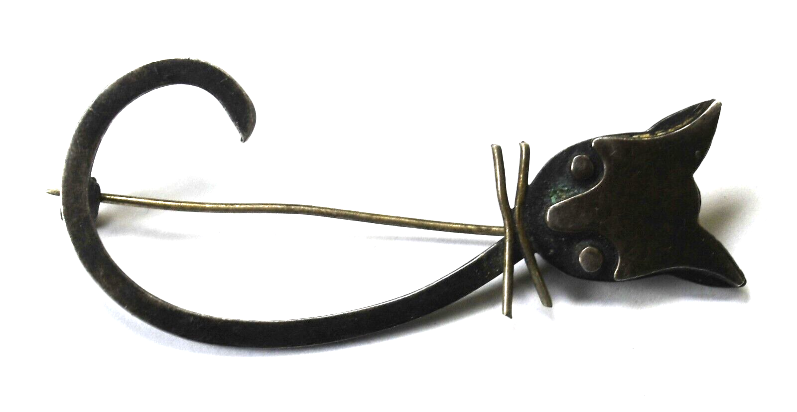 Sterling Silver Mexico Orvelo Cat Fishhook Brooch Pin 61mm x 24mm