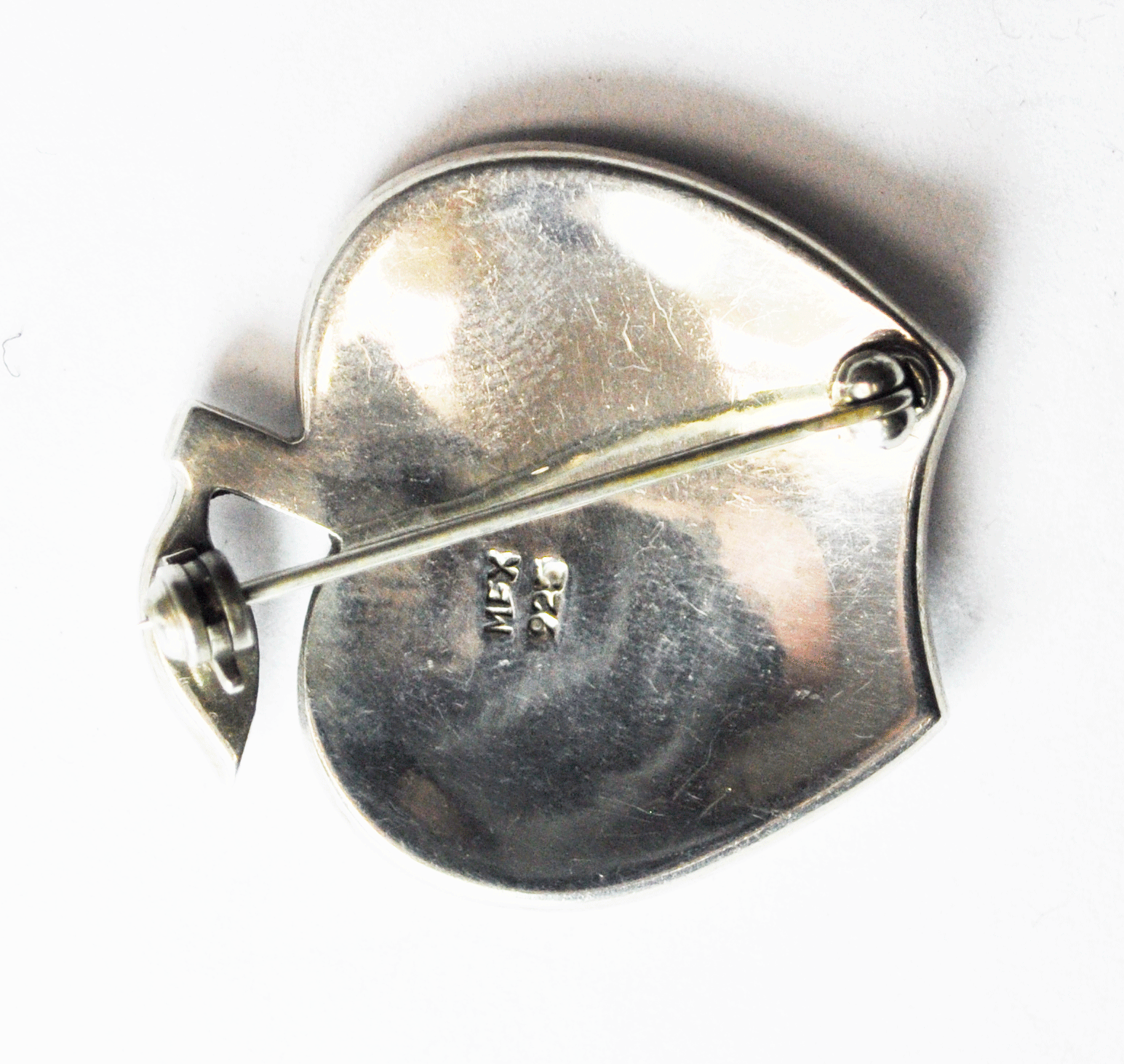 Sterling Silver Mexico Red Apple Enamel Brooch Pin Green Leaf 1-1/4"