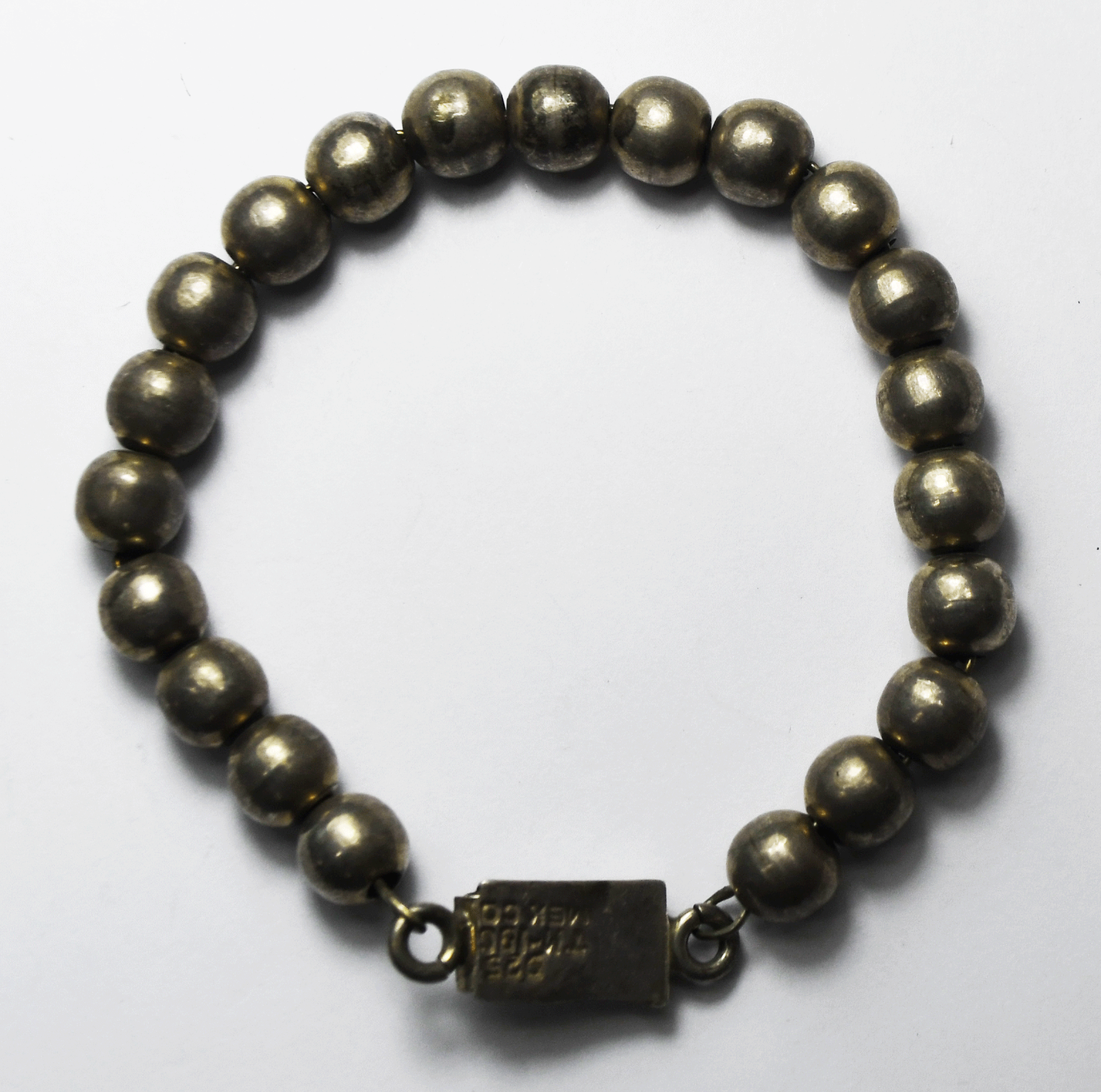 Sterling Silver Mexico Round Beaded Bracelet 8mm 7.5" 19g
