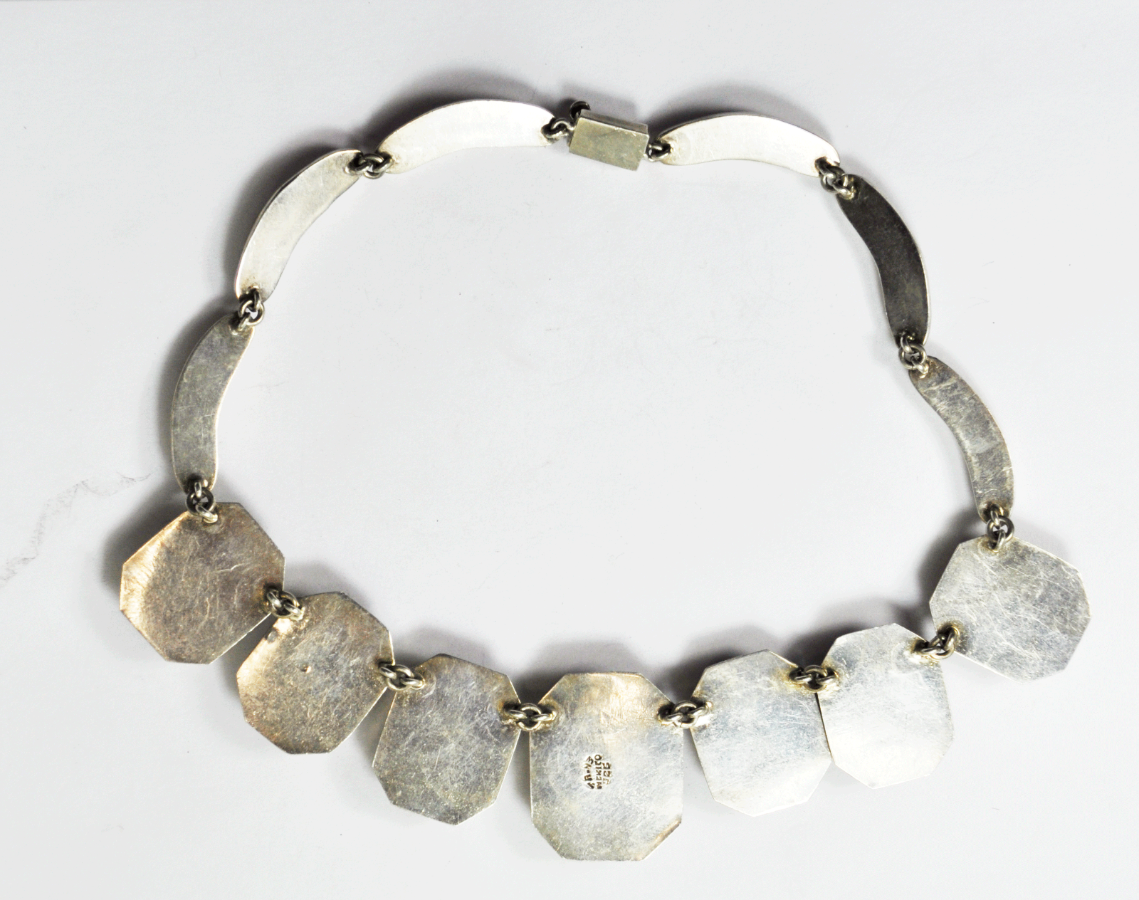 Sterling Silver Mexico TA-43 Heavy 35mm Onyx Jade Obsidian Sodalite Necklace 16"