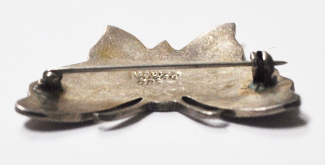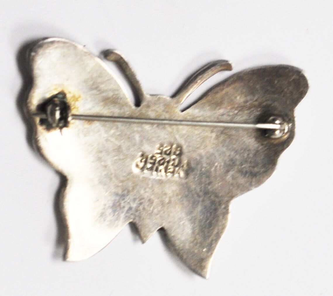 Sterling Silver Mexico TC-254 Turquoise Chip Enamel Butterfly Brooch Pin 43x33mm