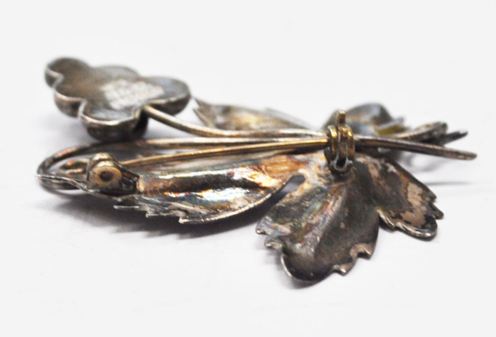 Sterling Silver Mexico TG-12 Leaf Grape Floral Brooch Pin 53mm x 44mm
