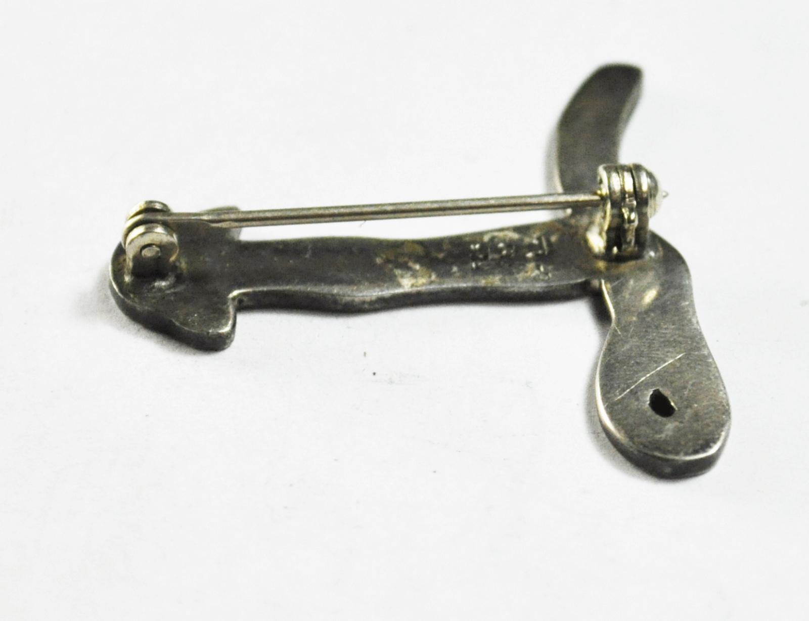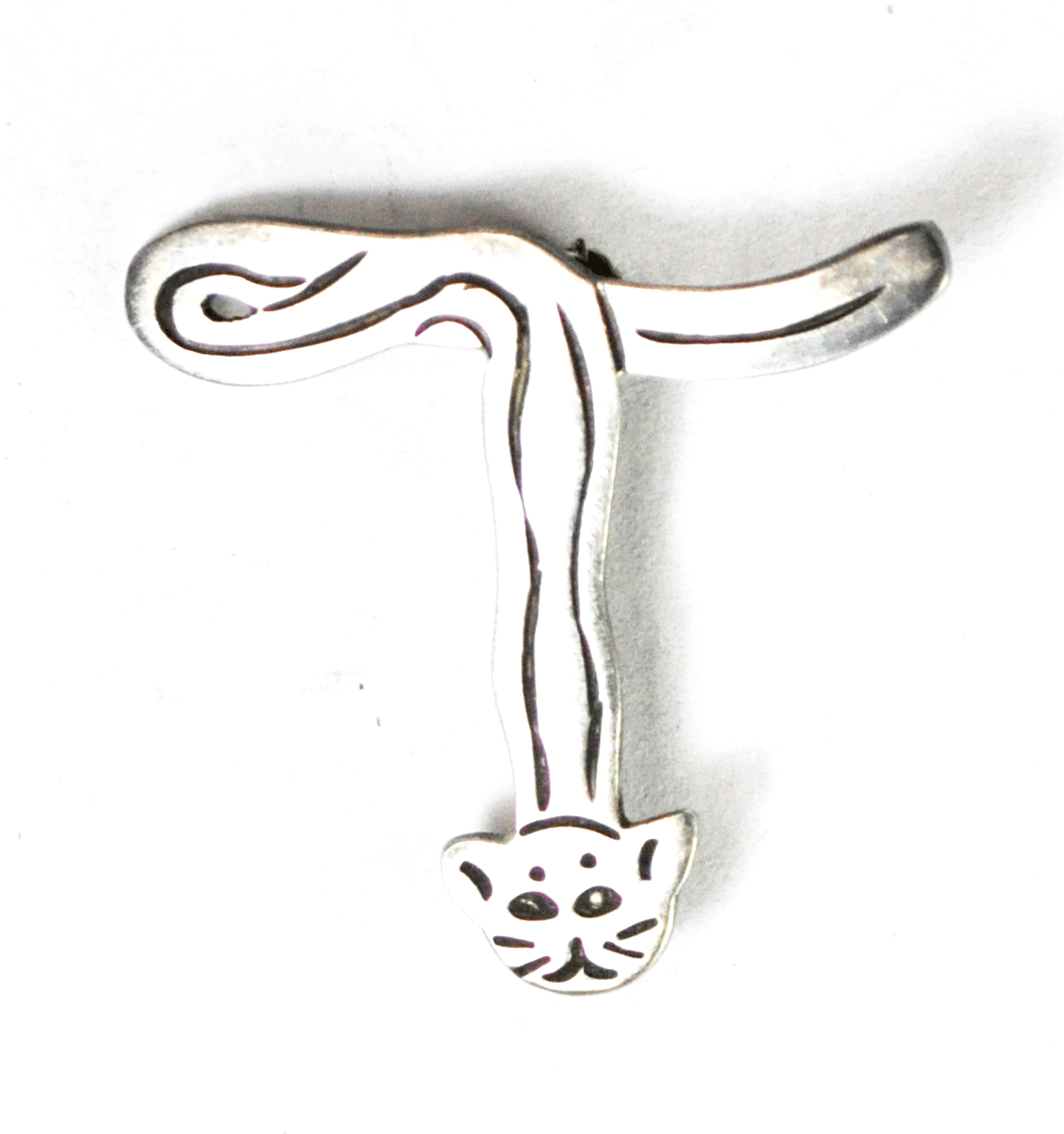 Sterling Silver Mexico TV-2 Letter T Cat 2-D Brooch Pin 34mm x 36mm Etched