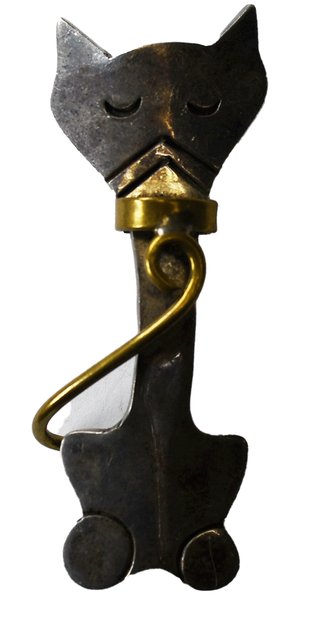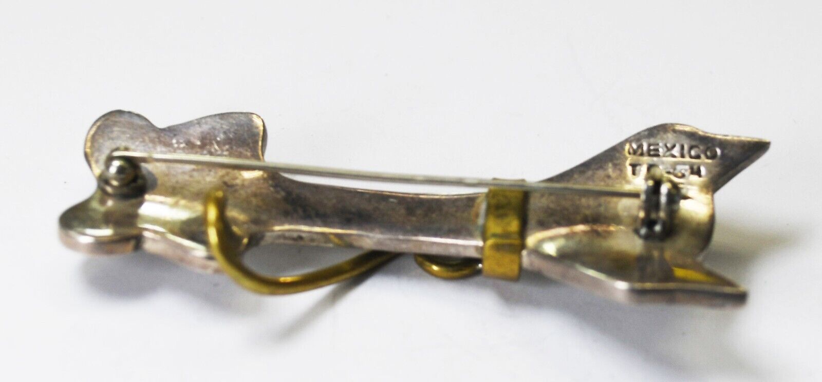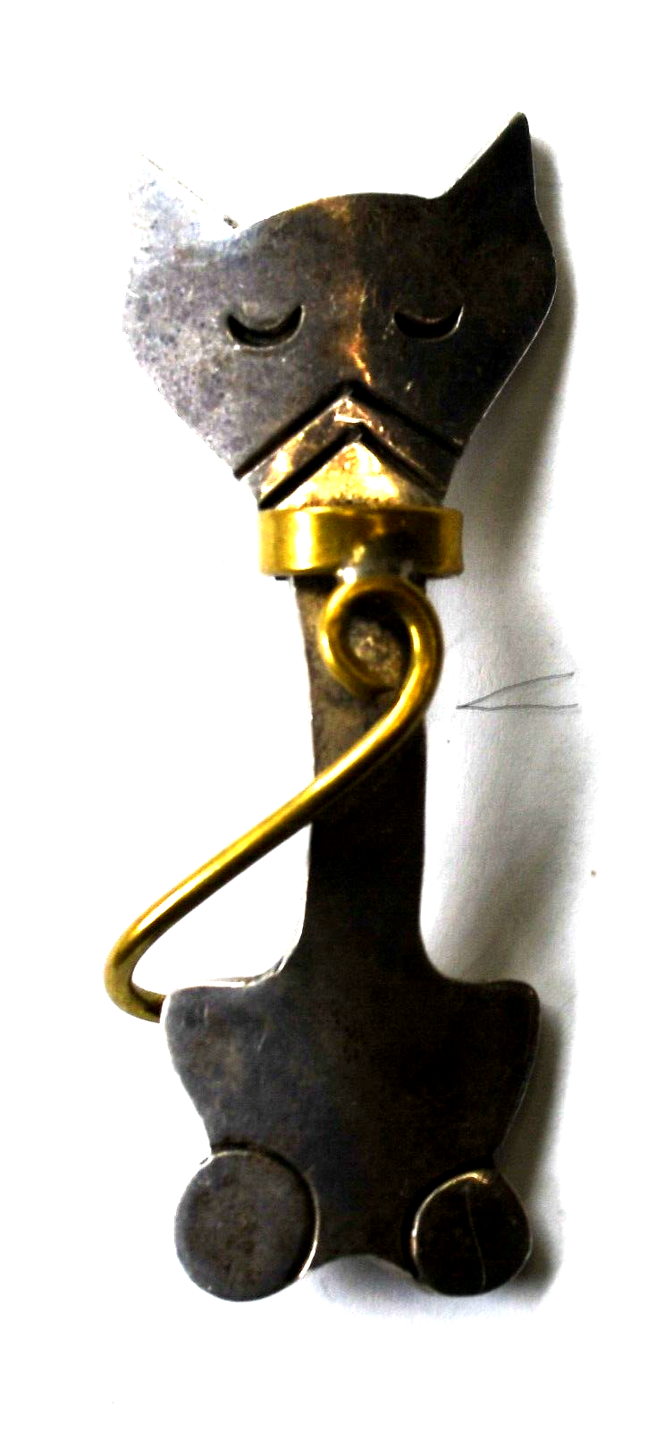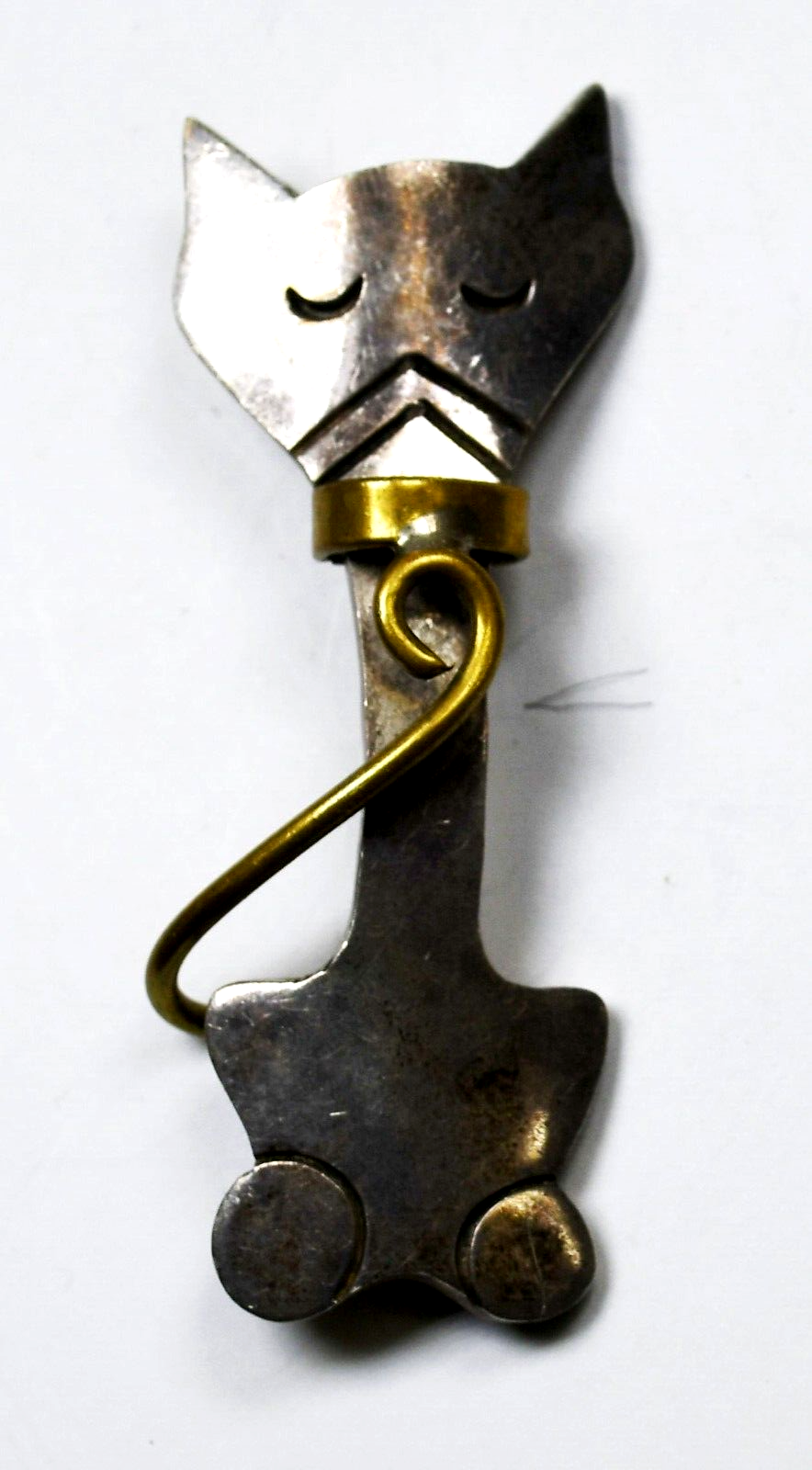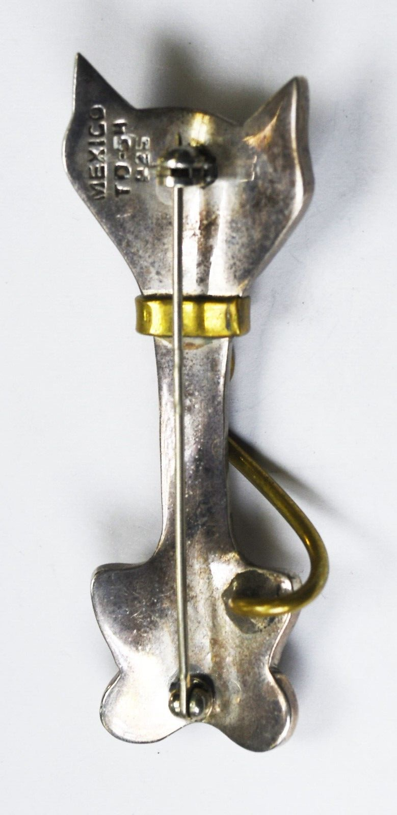 Sterling Silver Mexico Two Tone Cat Bronze Brooch Pin 61mm x 22mm