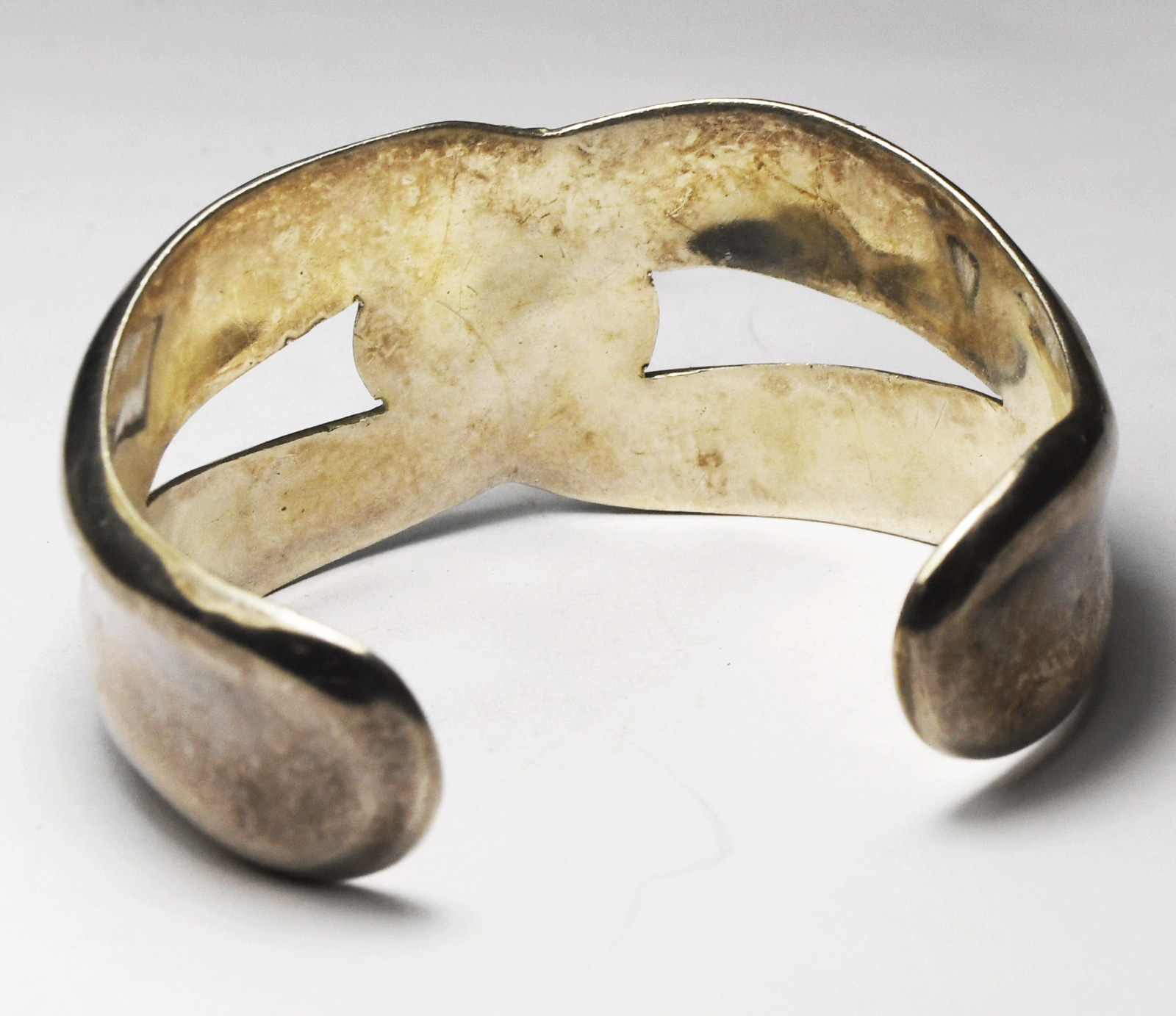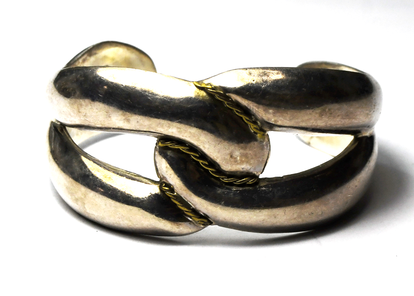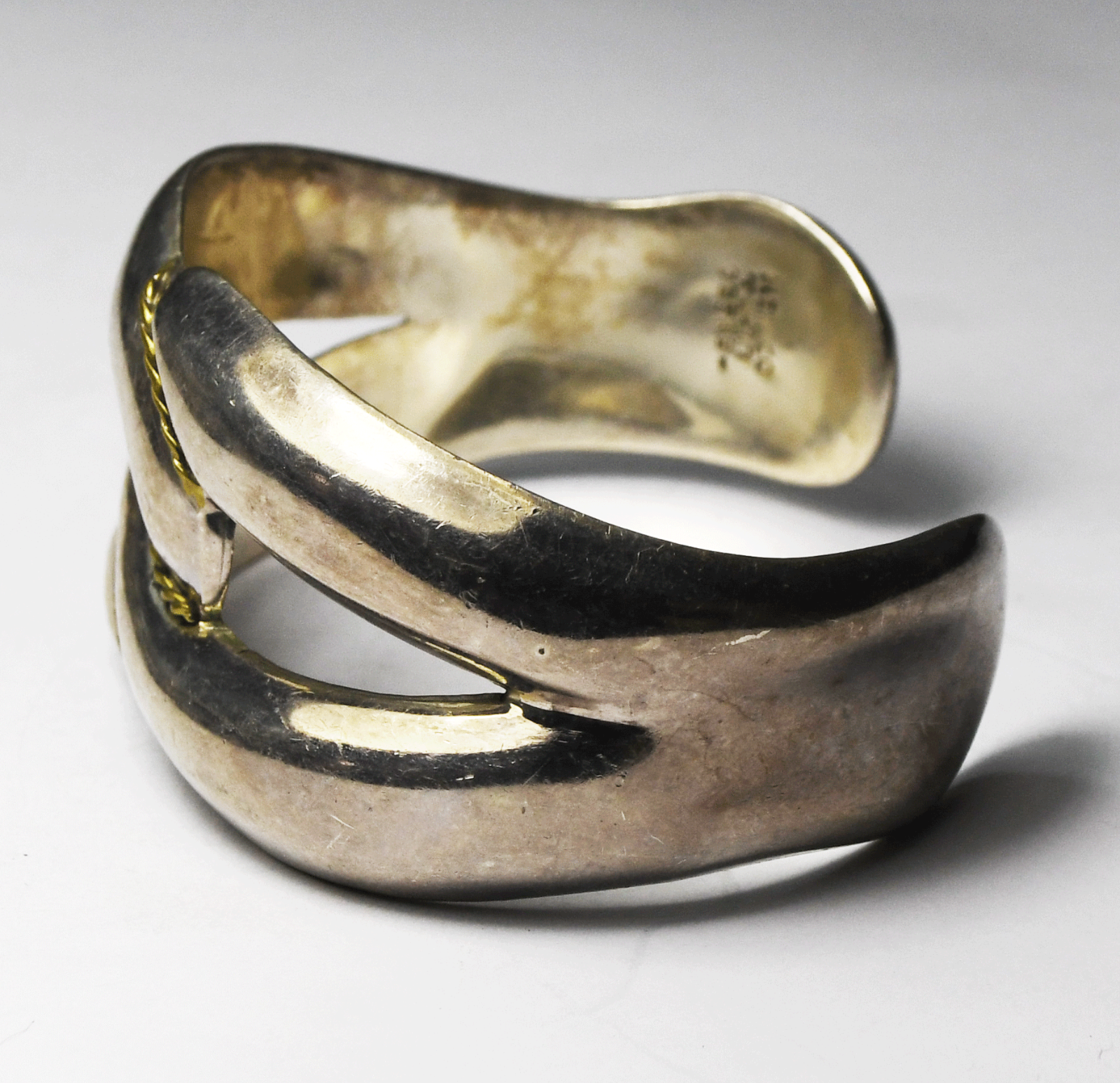 Sterling Silver Mexico Two Tone Cuff 30mm Bracelet 6.5" Wrist 45g