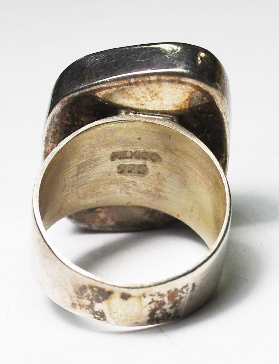 Sterling Silver Mexico Yellow Red Glass Ring 25mm Size 7