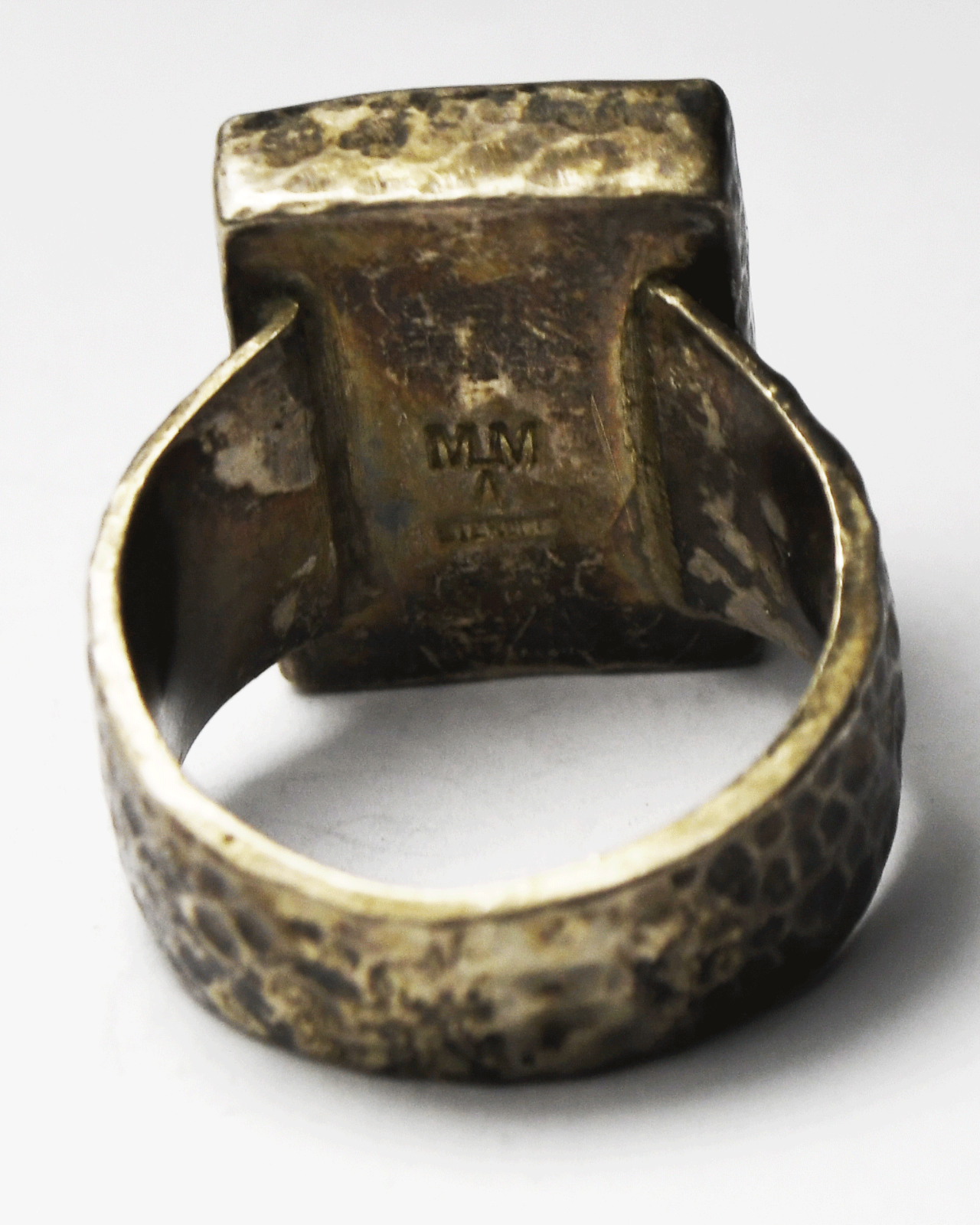 Sterling Silver MM Malachite Green Rectangle Hammered Ring 22mm Size 9-1/2