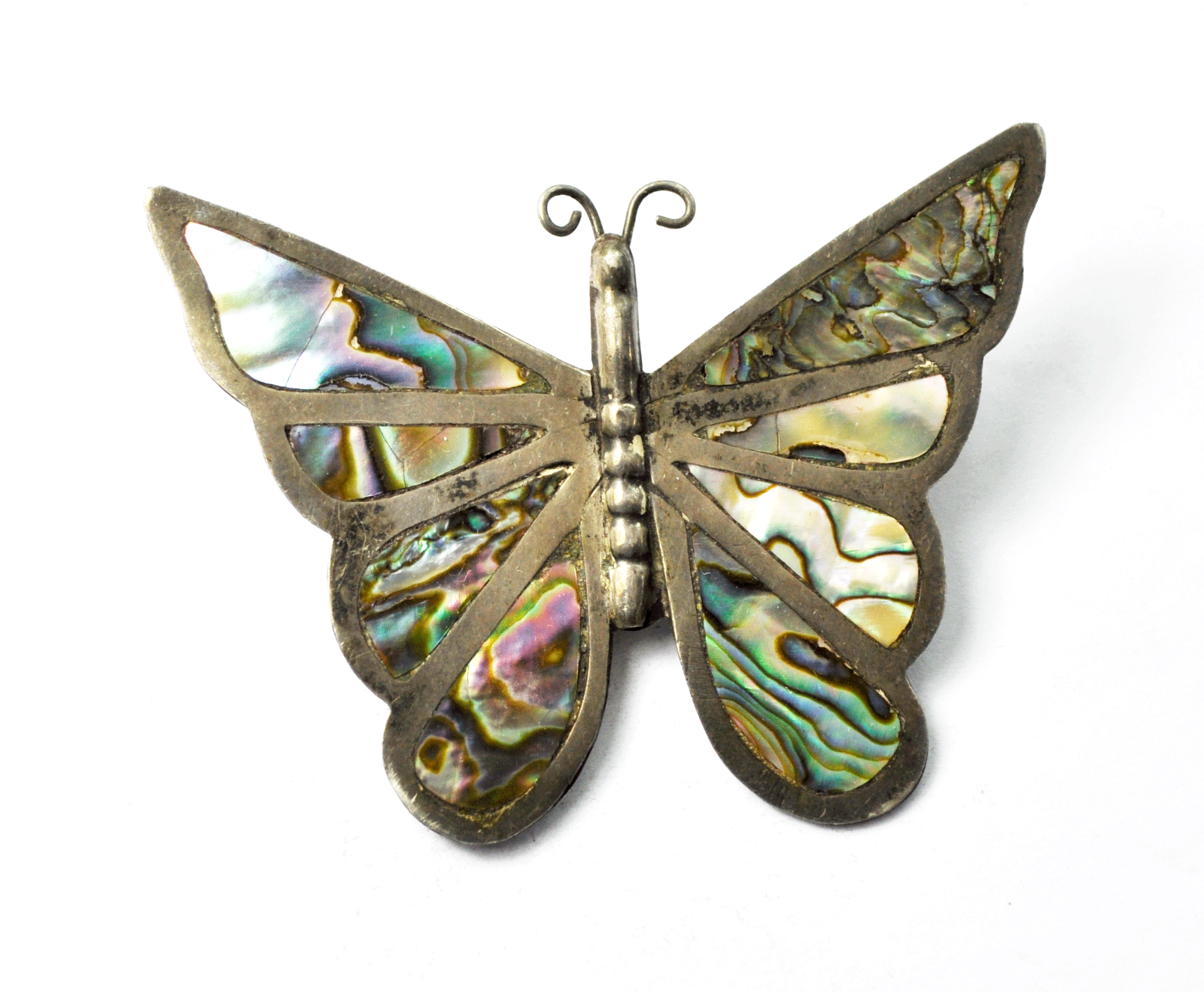 Sterling Silver Monfar Mother of Pearl Shell Butterfly Brooch Pin 2-3/4" x 2"