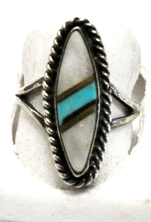 Sterling Silver MOP Turquoise Pointed Oval Ring 25mm Size 6-3/4 JBM