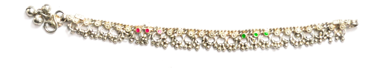 Sterling Silver MRJ Cha Cha Pink Green Enamel 11mm Flower Bracelet 6.5"