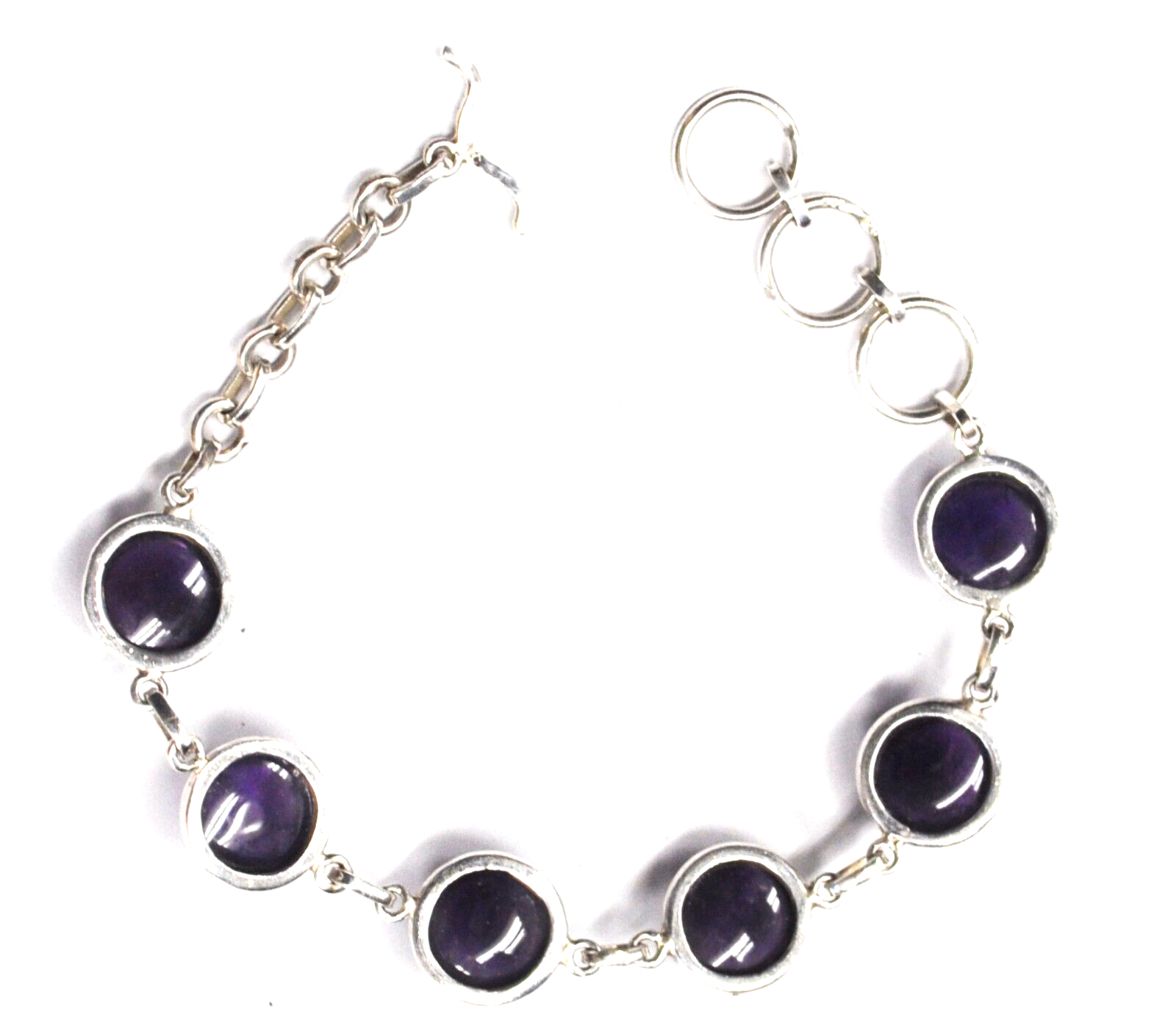 Sterling Silver NC 13mm Round Domed Amethyst Toggle 9" Bracelet
