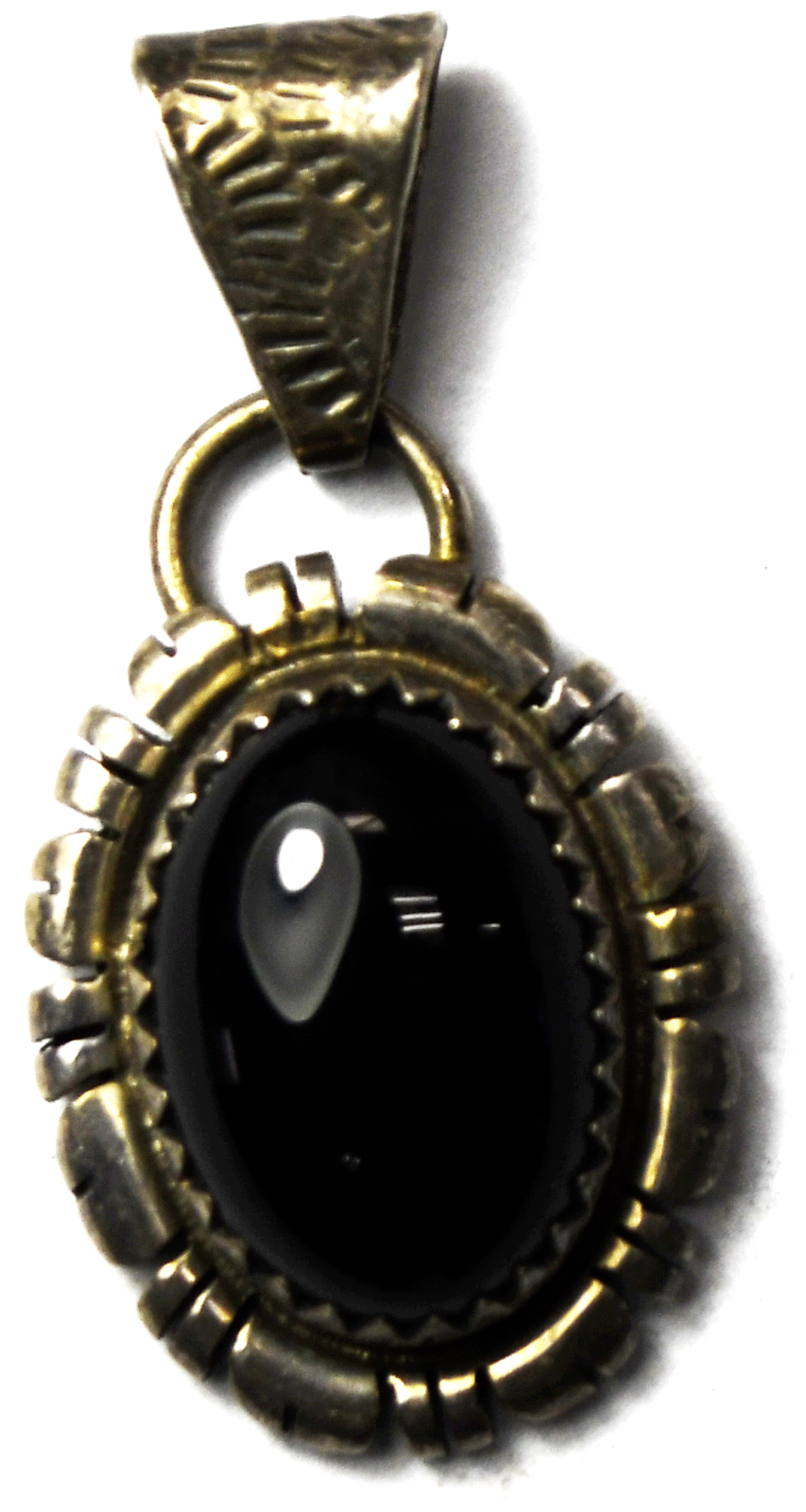 Sterling Silver Nila Cook Johnson Oval Black Onyx Pendant 32mm x 15mm