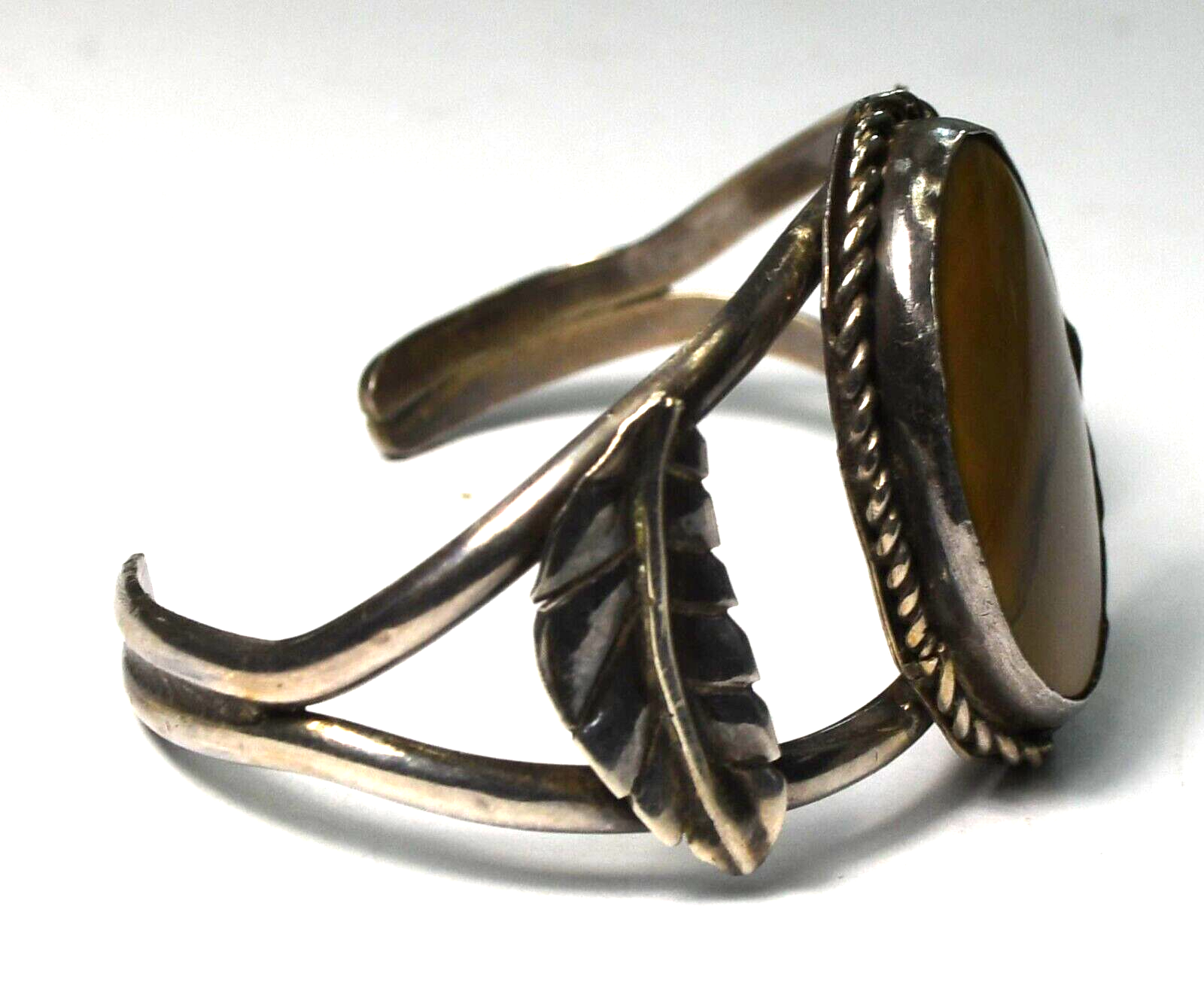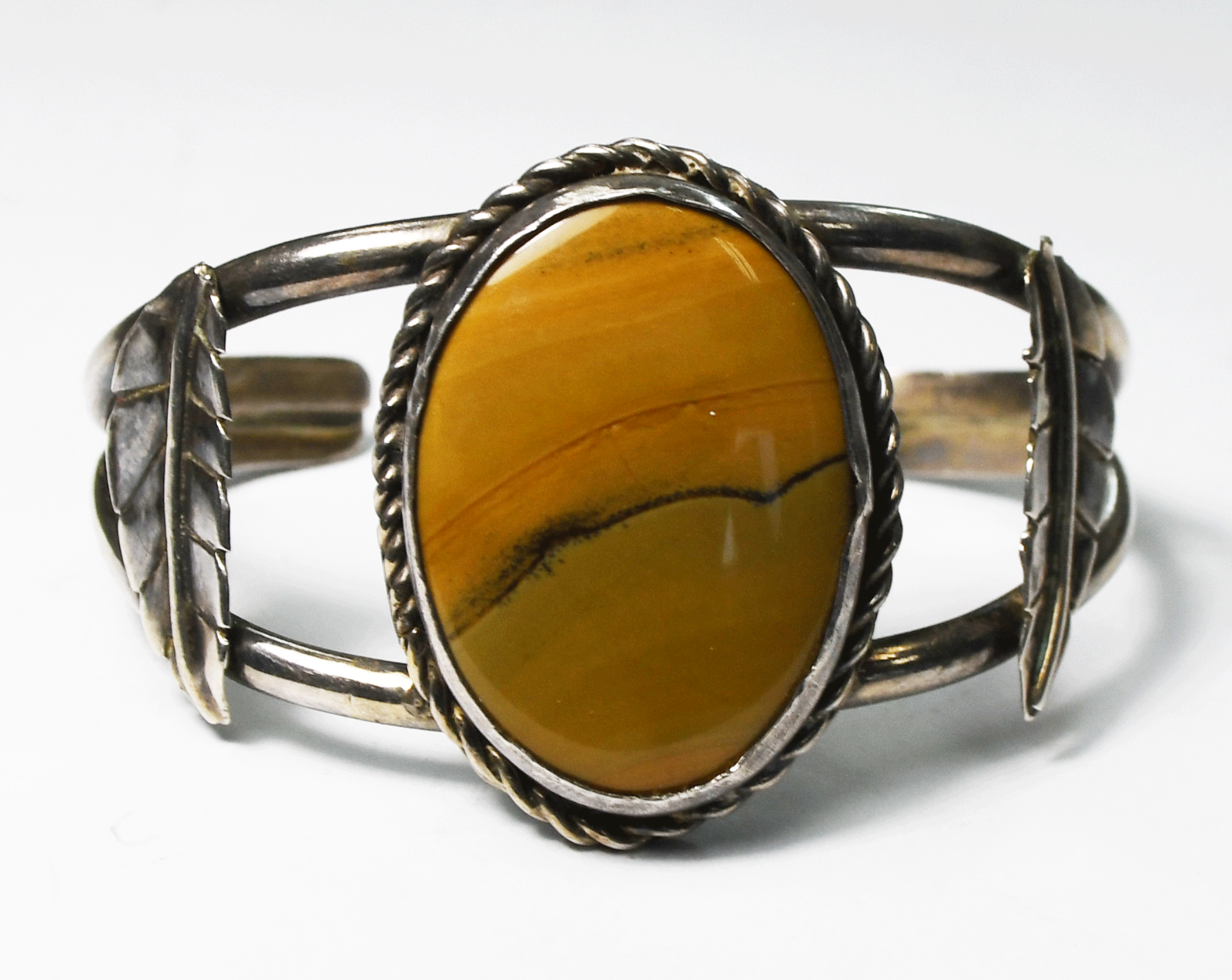 Sterling Silver Oval Jasper Leaf Edge Cuff 34mm Cuff Bracelet 5-3/4" Wrist