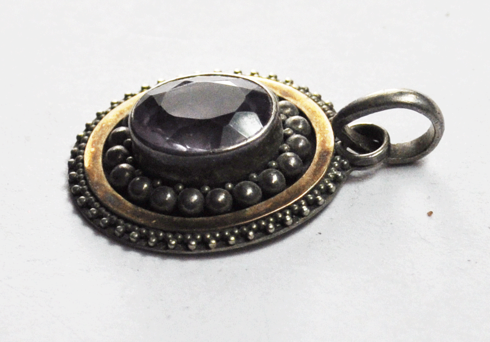 Sterling Silver Oval Purple CZ 33mm x 22mm Two Tone Pendant 5mm Bale Dot Halo