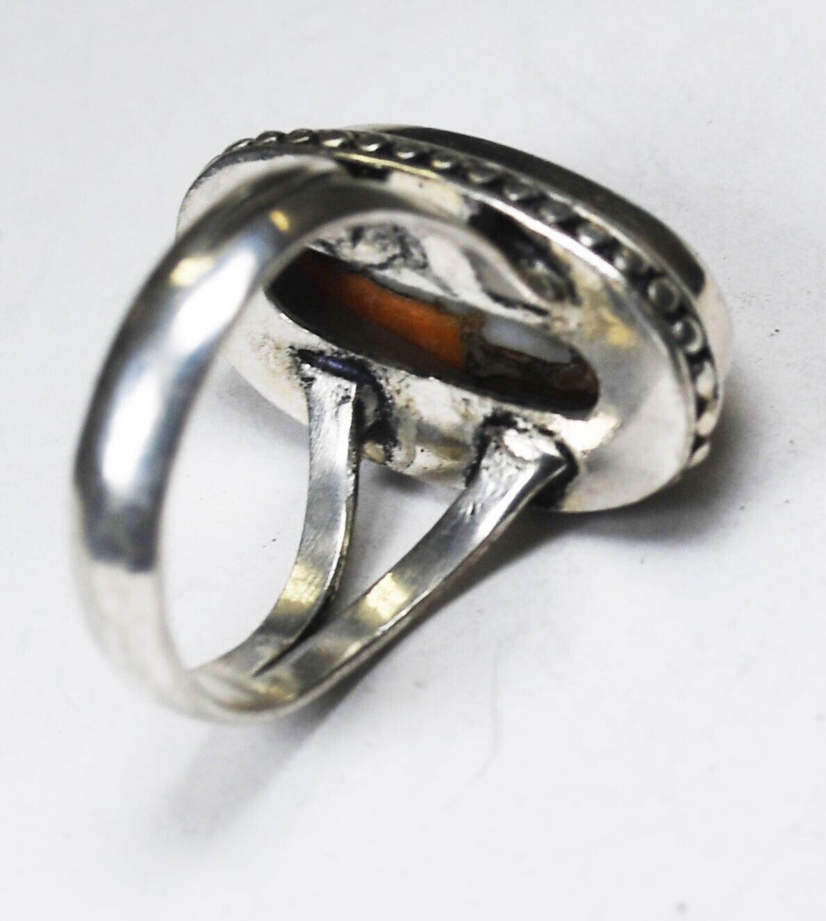 Sterling Silver Oval Turquoise Spiny Oyster Ring 24mm Size 8.5