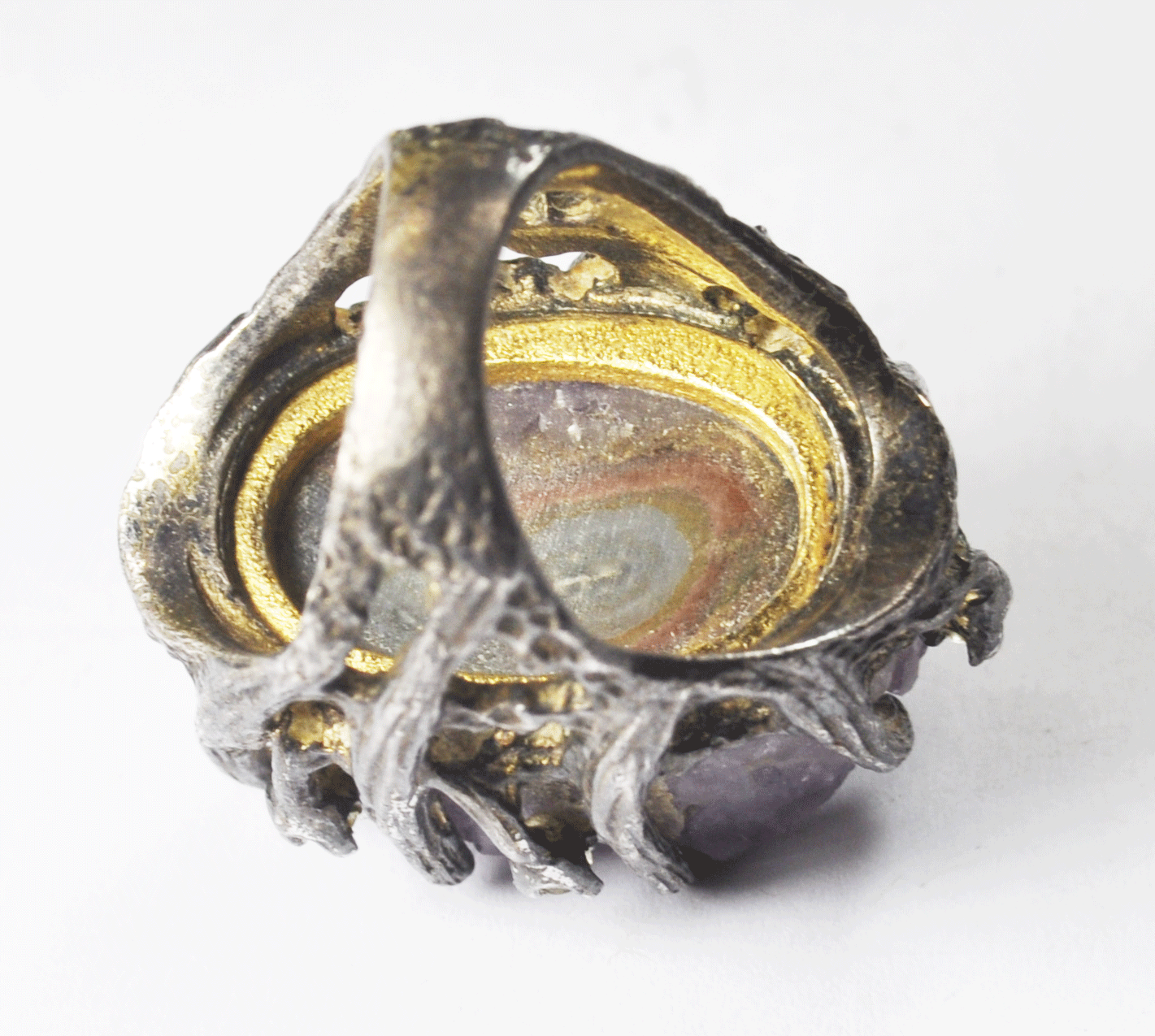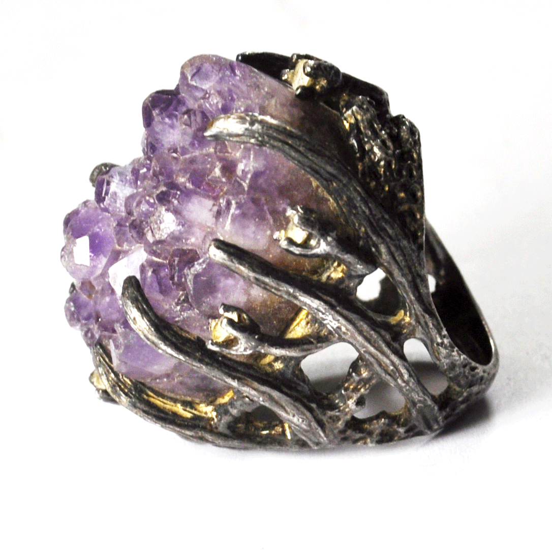 Sterling Silver Panetta Tree Branch Large Amethyst Ring 32mm Size 4 Brutalist