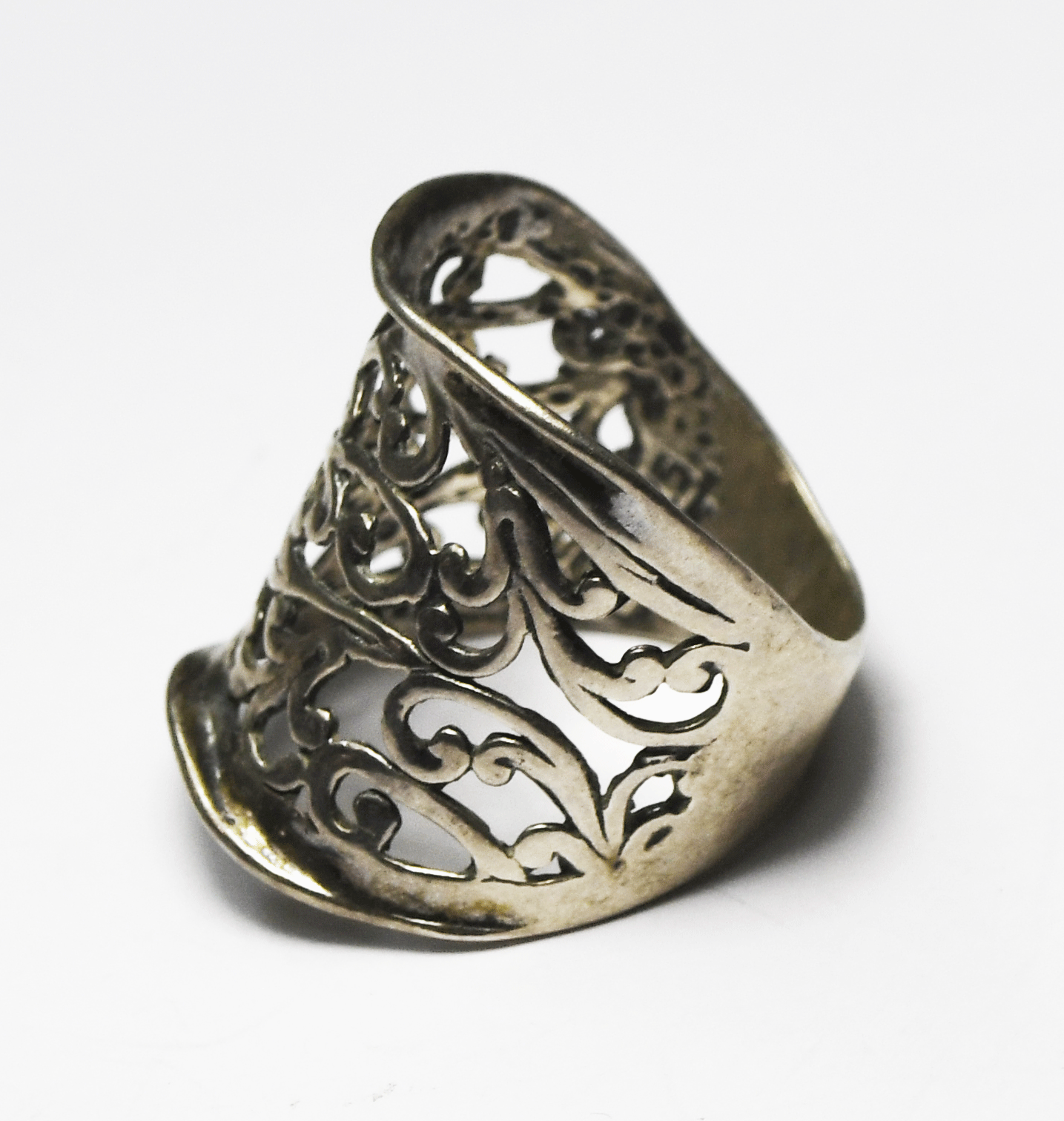 Sterling Silver Paz Or Filigree Vine Floral Ring Band 23mm Size 10-1/2
